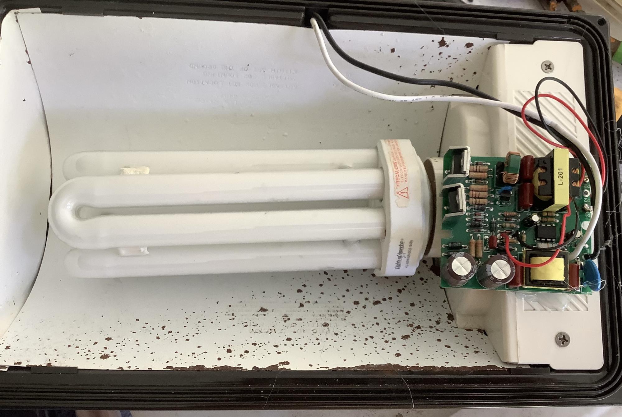 Here are some pictures of the new ballast board in old Light of America enclosure and light socket