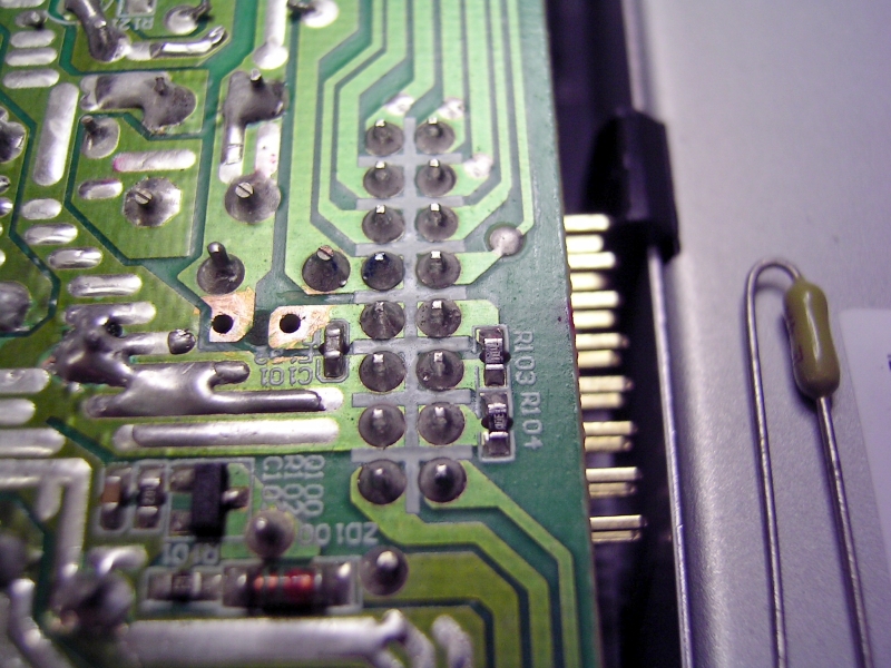Fuse replacement with Pico fuse. Cleaned mask from trace and drilled holes to accept said fuse type, shown on right.