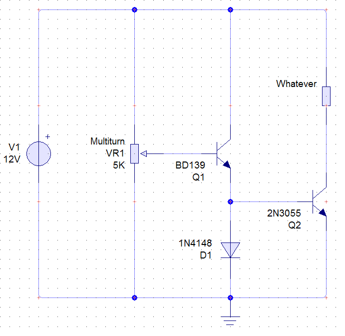 I've just built myself a 20A current source using a BD139 and two 2N3055s (in the schematic there's only one figured, i use two in parallel for Q2). I feed it with a 9.5Ah SLA battery, just the thing for getting a boatload of amps.