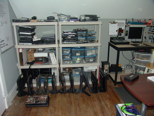 Please don't take this posting as me bragging about what I have. I'm very humble and I don't think my workspace is anything to write home about. But I learned a lot about setting up my work area by seeing other peoples shops and asking questions. I think posting your work space would be great to a beginner to open up conversation as to why, what and how you set up your shop the way you did. Also, all of us geeks appreciate this kind of stuff!