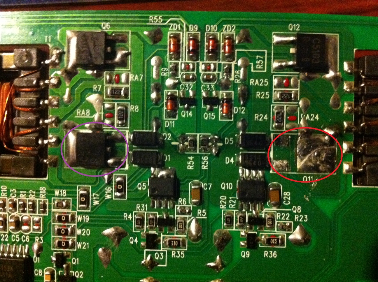 Was working perfectly and all of a sudden I heard a pop, and then a glow from the amp. Not only did the 2SC5669 burn a leg, but R520 which is a 220 ohm resistor partially burned - it now measures 110 ohms.