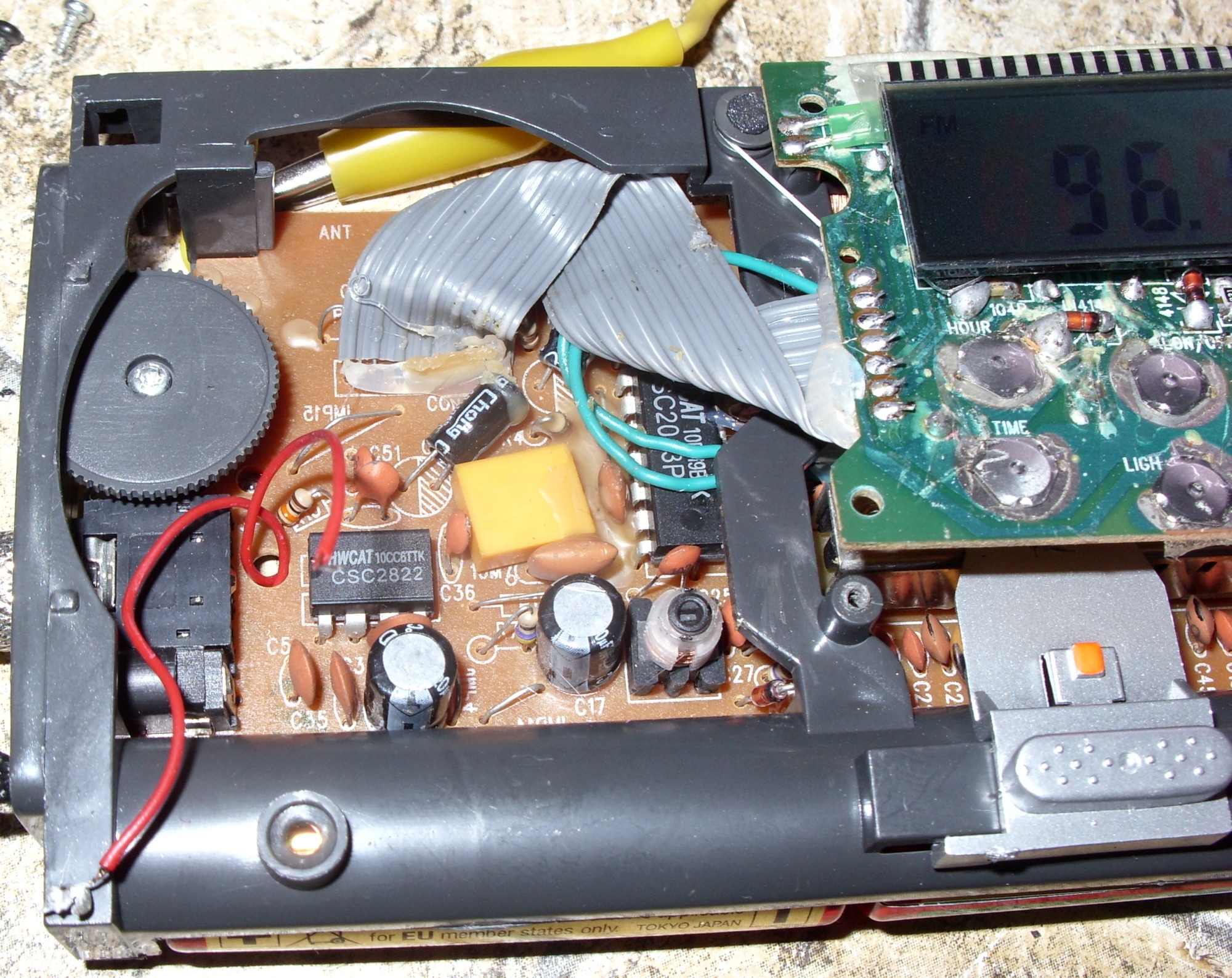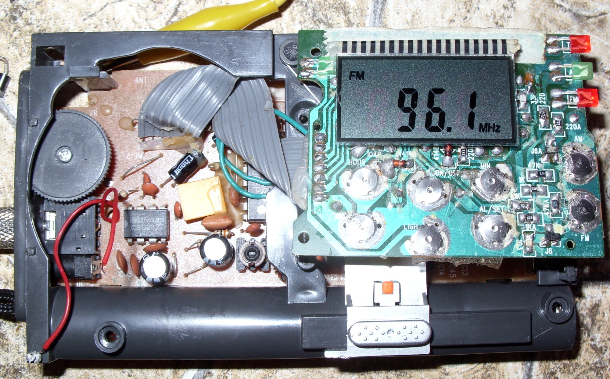 I no longer have an oscilloscope and my multimeter only goes up to 50MHz, so it wouldn't be wise to try to hit the FM band (plus i have a car modulator i can use for that anyway), but i could aim for shortwave. Trouble is, i had given away my last "world band" radio 2 years ago! Since i was out shopping anyway, i remembered a store at the bus stop which sold cheap crap like watches, clocks and radios.
