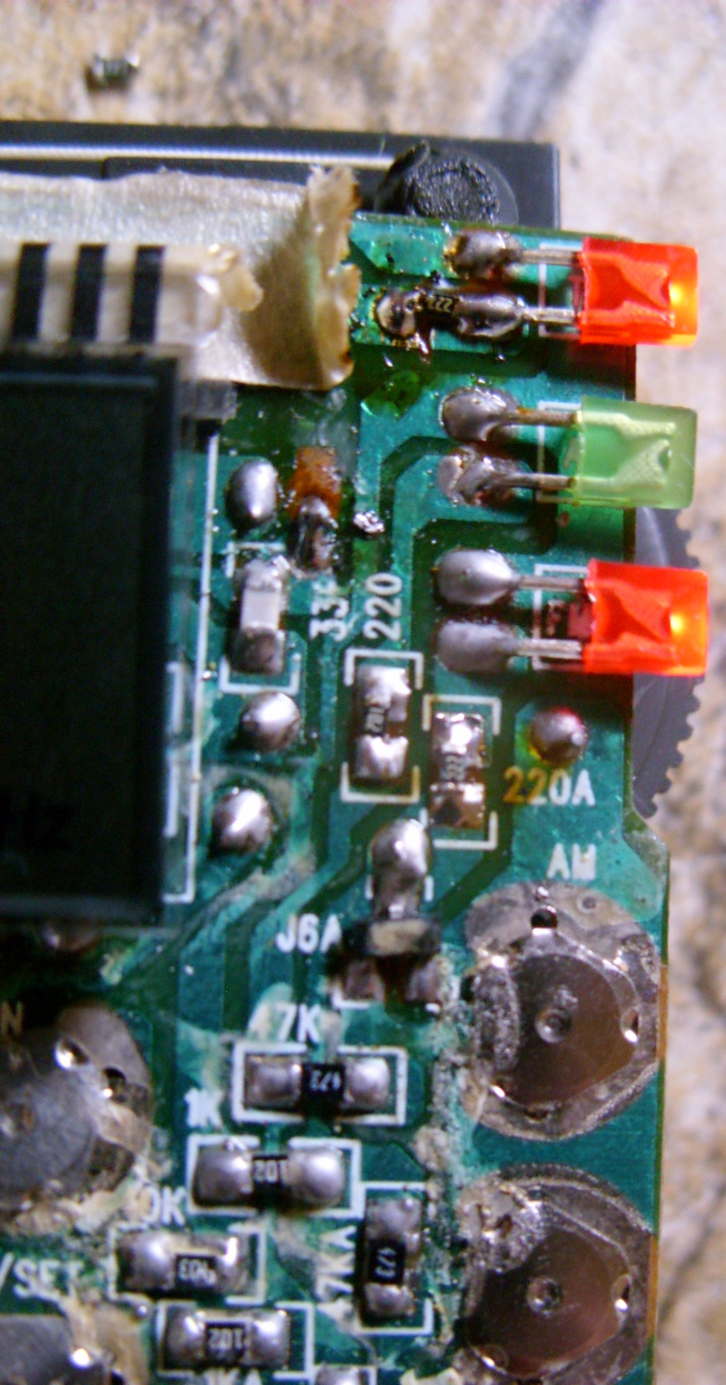 Looks like there's hacking to do. I also agree with that reviewer, the band indicator and tune LEDs are way too bright and just waste power. I don't want those shining in my face and eating up my battery, so i'll tone them down. But hey look, there's even a button for LCD backlighting! That's a new one... Unfortunately it's a lame little green LED in the top-left corner, which doesn't really do anything. At least they tried.