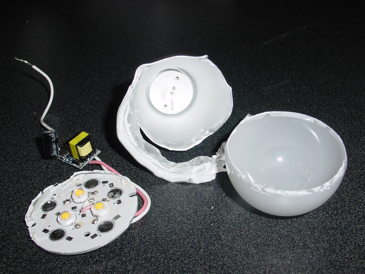 - No fuse. Not even a fusible resistor! The closest to a fuse is the input inductor, which is the only EMI filtering this bulb has; that might have a fusing current, but I'm skeptical it would meet CE.