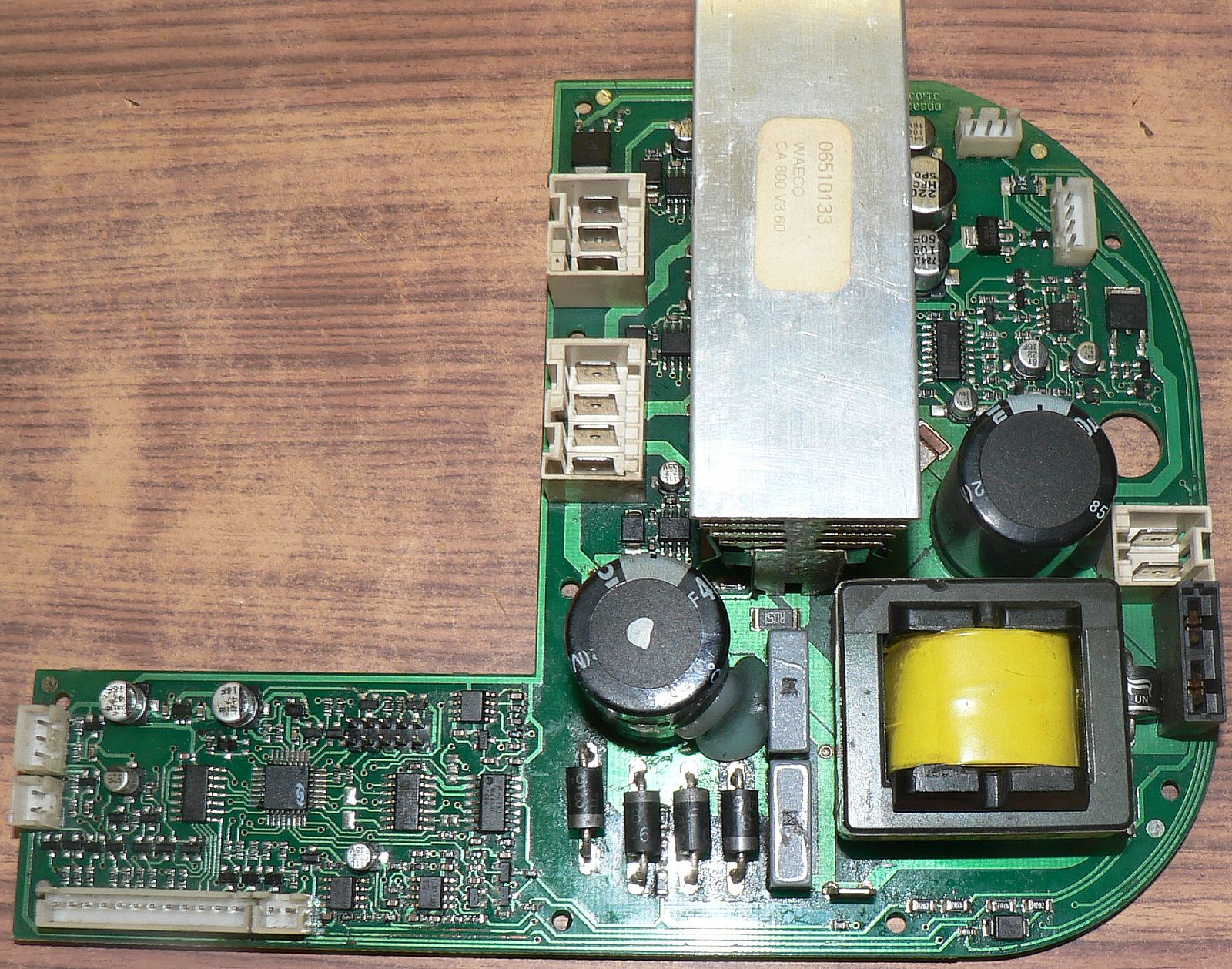 Got PCB from brothers truck air conditioner unit. It seems to be Waeco CA-800. So far I have discovered it is 24V powered unit, obviously with step-up transformer - transforming most likely to 230 V for compressor and maybe also the fans (at least two fans in there).