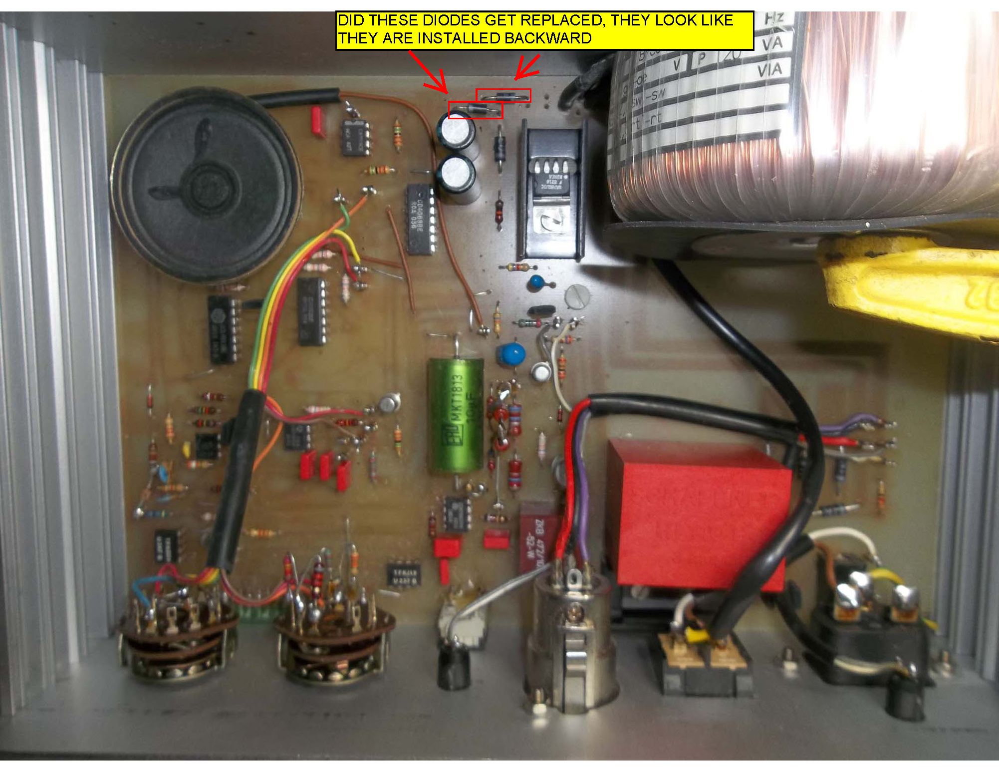 So anyway, the machine powers up and everything seems to work correctly but, there is no output signal to the pads.