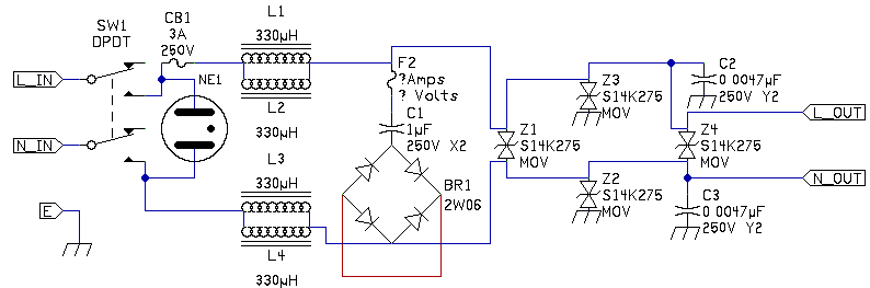L1/L2, C1 and BR1 (BR1 is wired like two diodes back to back) in the Precision Power model.