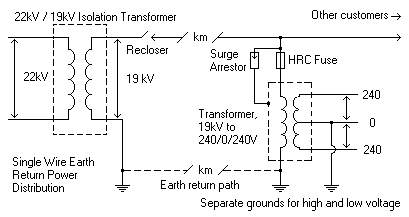 The Key is that the last step down transformer secondary, rather then just use one side as Active and call the other Neutral and tie it to Earth