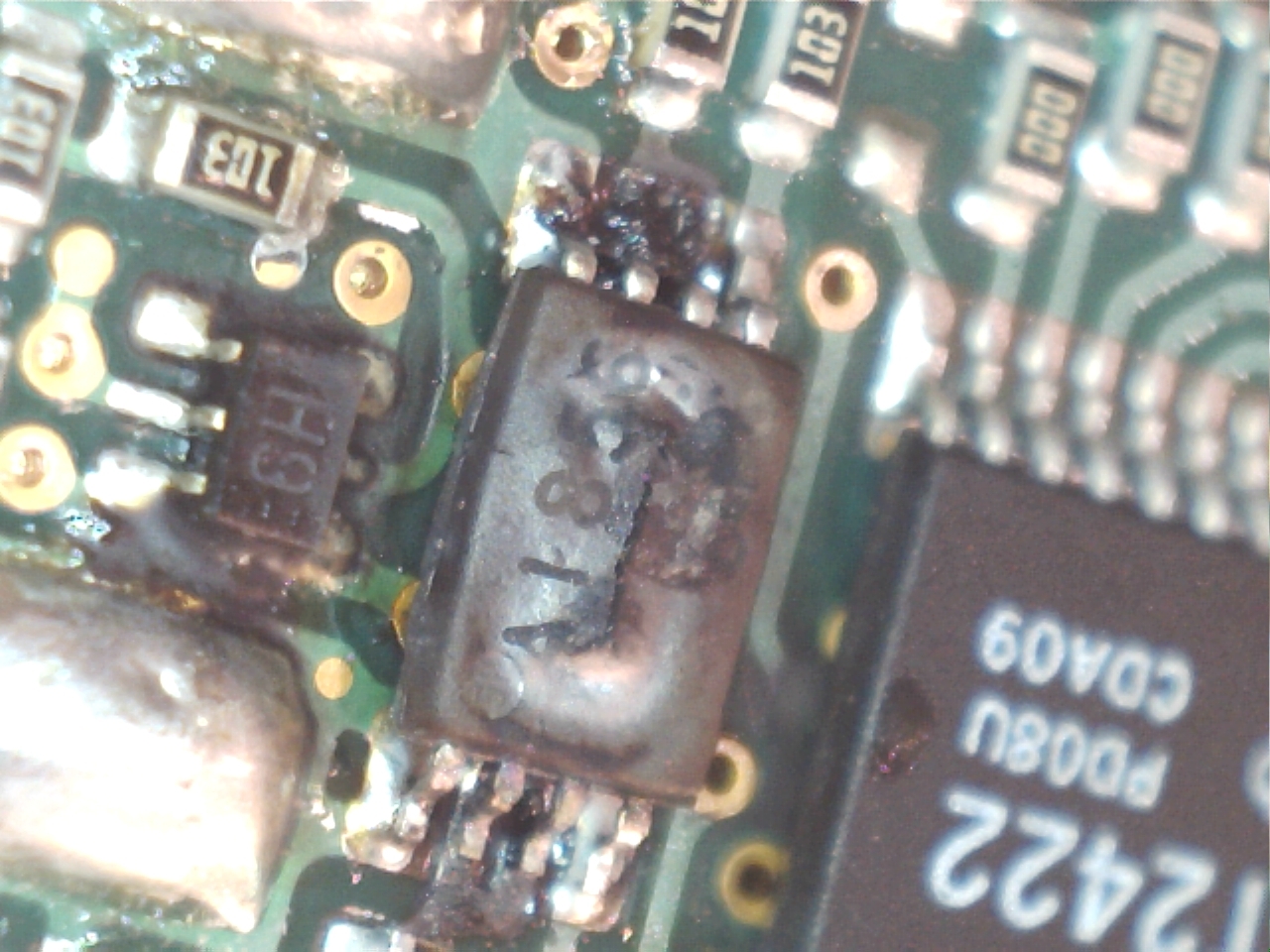 There is a similar one next to it with the marking "AI855 603" or "A1855 603" But the burned one is clearly "856"