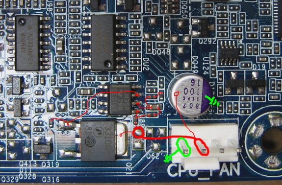 My current motherboard, a Gigabyte GA-EP45-DS4, is failing. I have a spare, but it also has a problem: The Sys_Fan2 fan output is stuck at 12V. It is a 4-pin connector which could previously be controlled in software - until someone shorted two of the pins out while the system was on. I am hoping to restore the ability to regulate the voltage to a standard non-PCM fan.