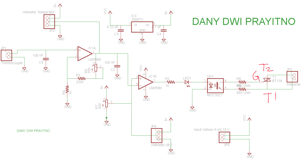 My heating element doesn't work with 60V AC. It's not even getting hot and the thermocouple amplifier output is a constant low, therefore it will not trigger the comparator to drive the optocoupler to turn off the TRIAC.