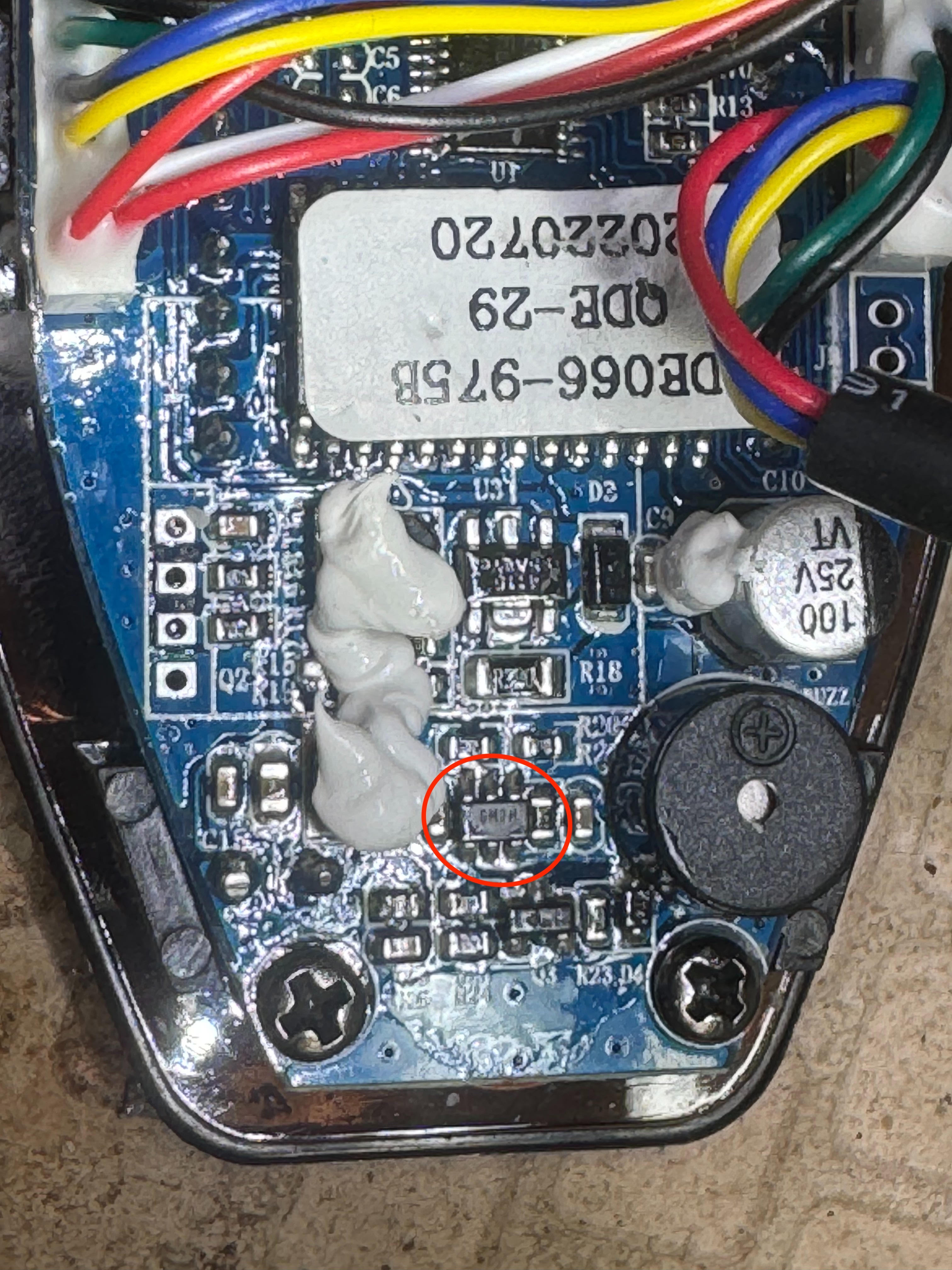 with infrared camera, this chip (photo circled) would heat up if I push power button on.