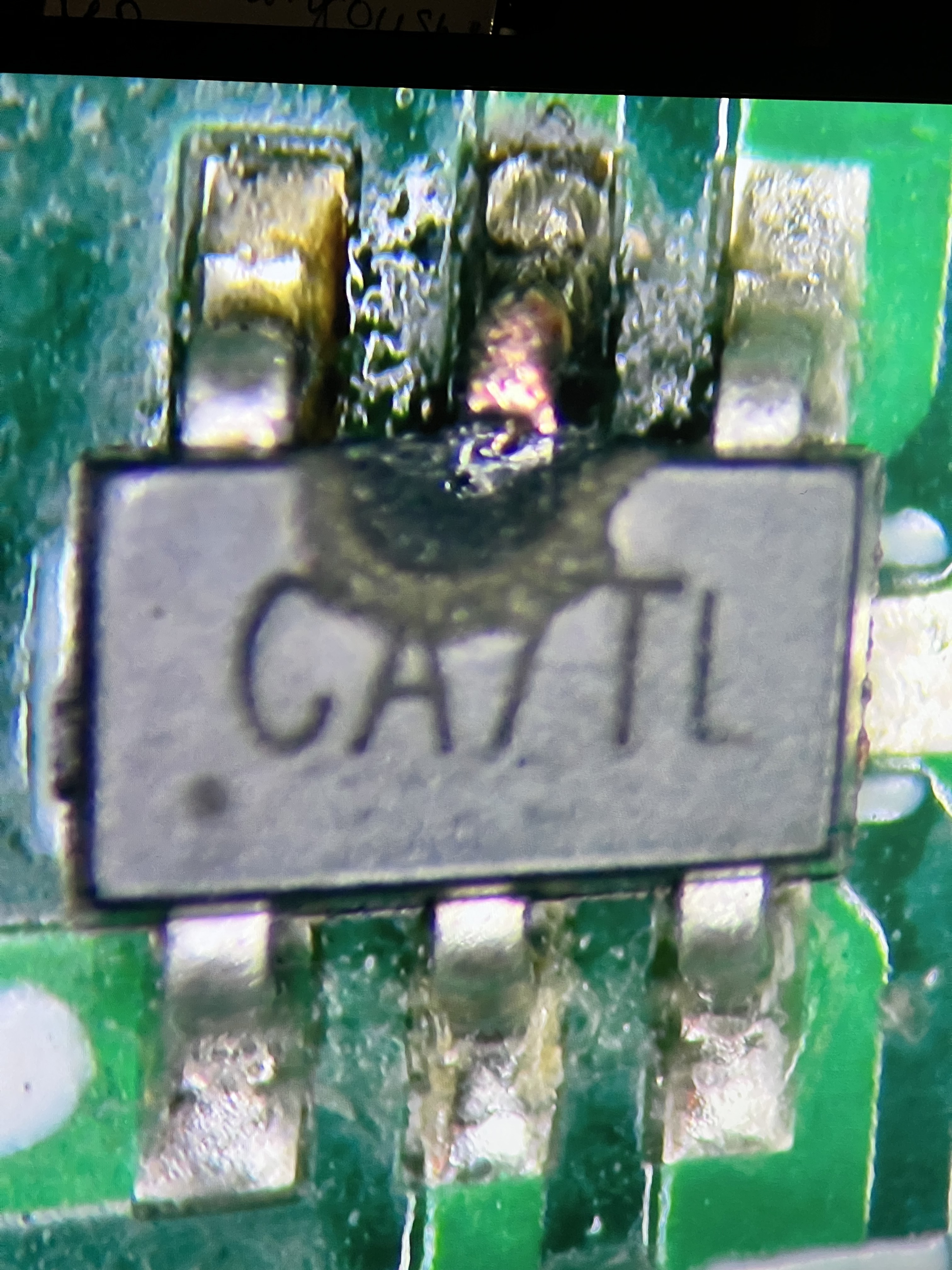 Ordered a new CPU and Memory chip and installed them, reconnected the screen and all shorts are gone. Reconnected the power to check the 5v point and 3.3 regulator and the chip you see in the picture started smoking. Now my issue is what is that chip “CA7 TL” ( the Amazon screen shot is the regulator that’s next to it that was read 12v)