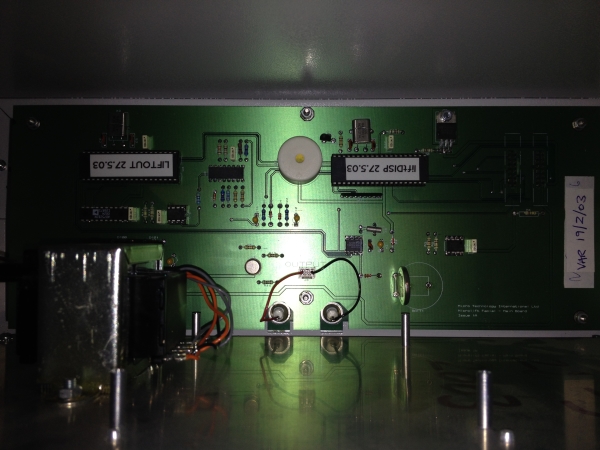 The design looks pretty old, I would guess late 90s. I'm not sure what it does, given there looks to be very little inside of it... There looks to be a socketed device which might be an EEPROM for settings and two microcontrollers, one for the display and one for everything else, I am guessing.