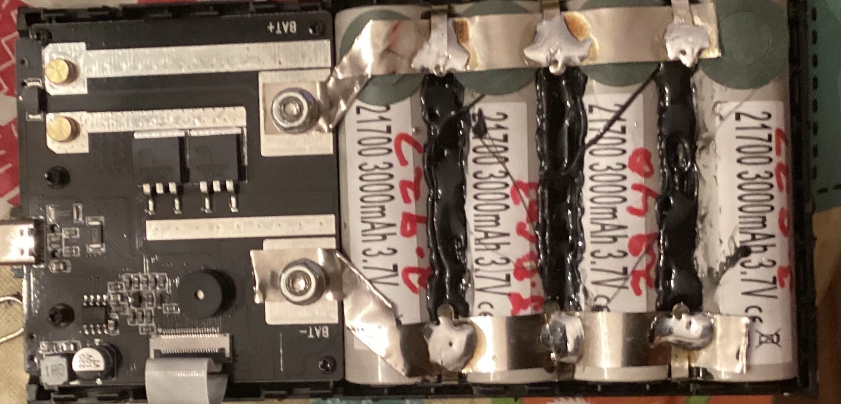 I can fit 21700 battery cells in the enclosure it is very tight fit for four of them that are 35 amp high current capacity 35X4=140 high current output this should work a lot better than what is installed right now