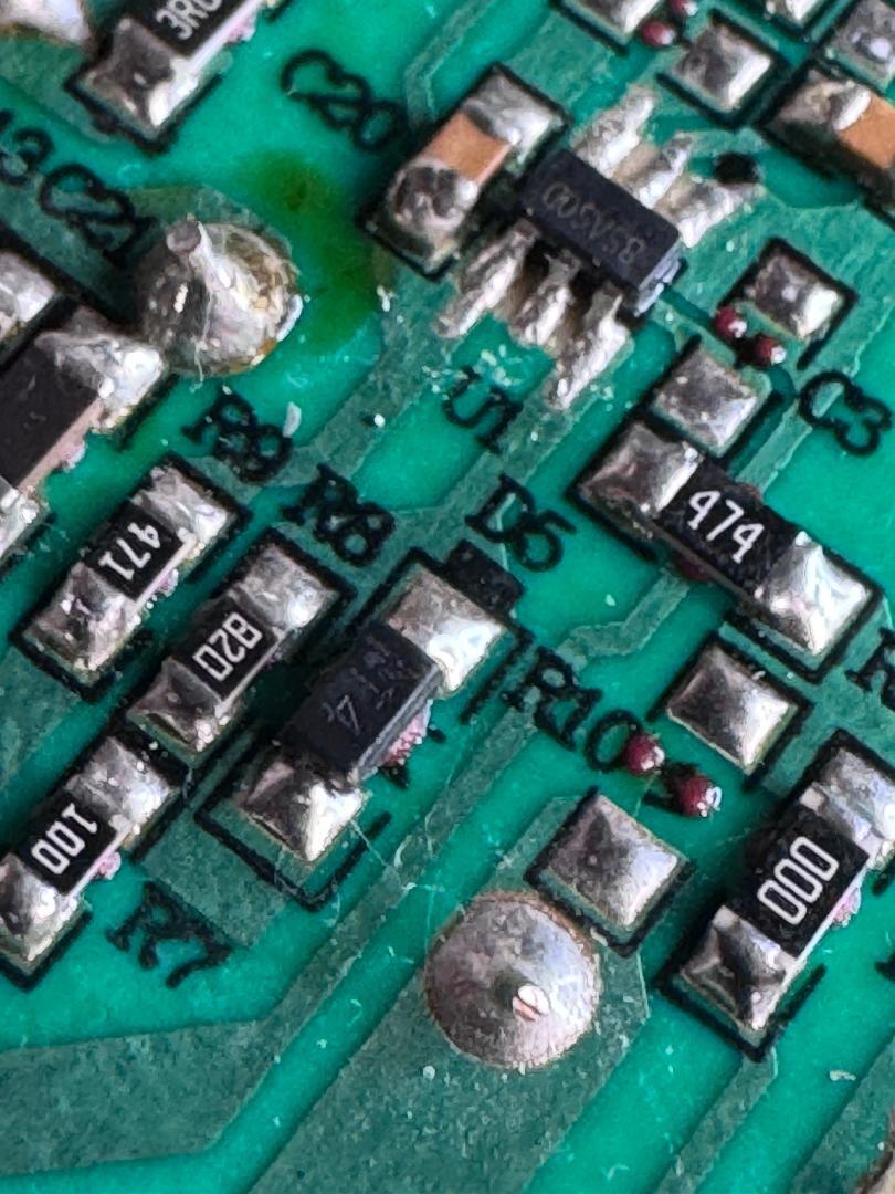 I have a quad charger that is split into 4 separate sections and one section doesn’t charge anymore. I have located what I think is a thermistor and on the shrink tube it says 125 degrees C. I cut the shrink tube and it's a 33 ohms resistor. It measures a little less than 1/2 inch in length. I am including pictures of it. Please help me identify it. So, it should test at 0.4ohms and probably go up in resistance with the rise in temp. On the board it clearly says R for resistor. But it has to be a special one.