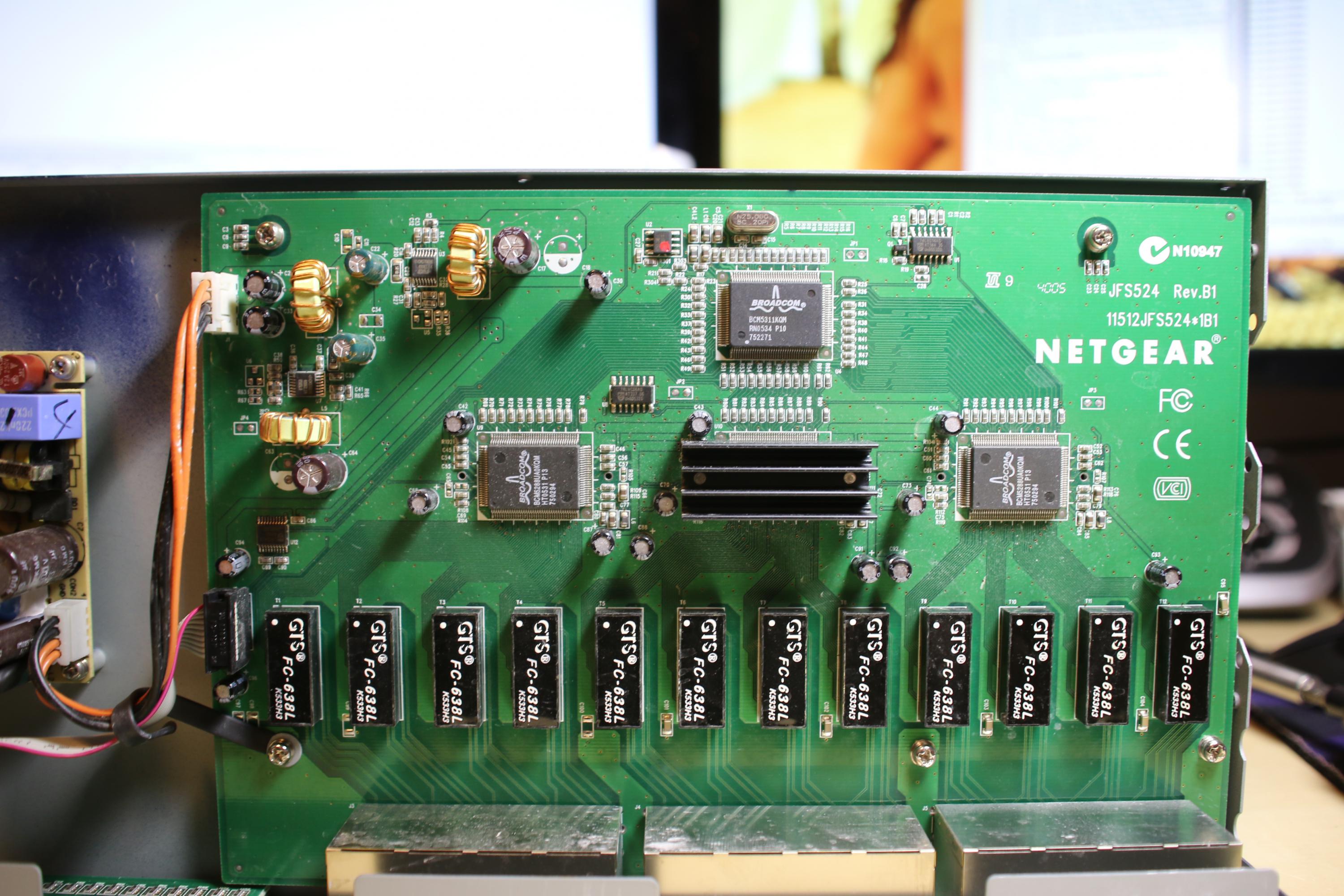I had a Netgear ProSafe 24 ports 10/100 Switch, model # JFS524 that has some network connections is defective. I would like to know if i can repair or change some parts on the board to recover my switch.