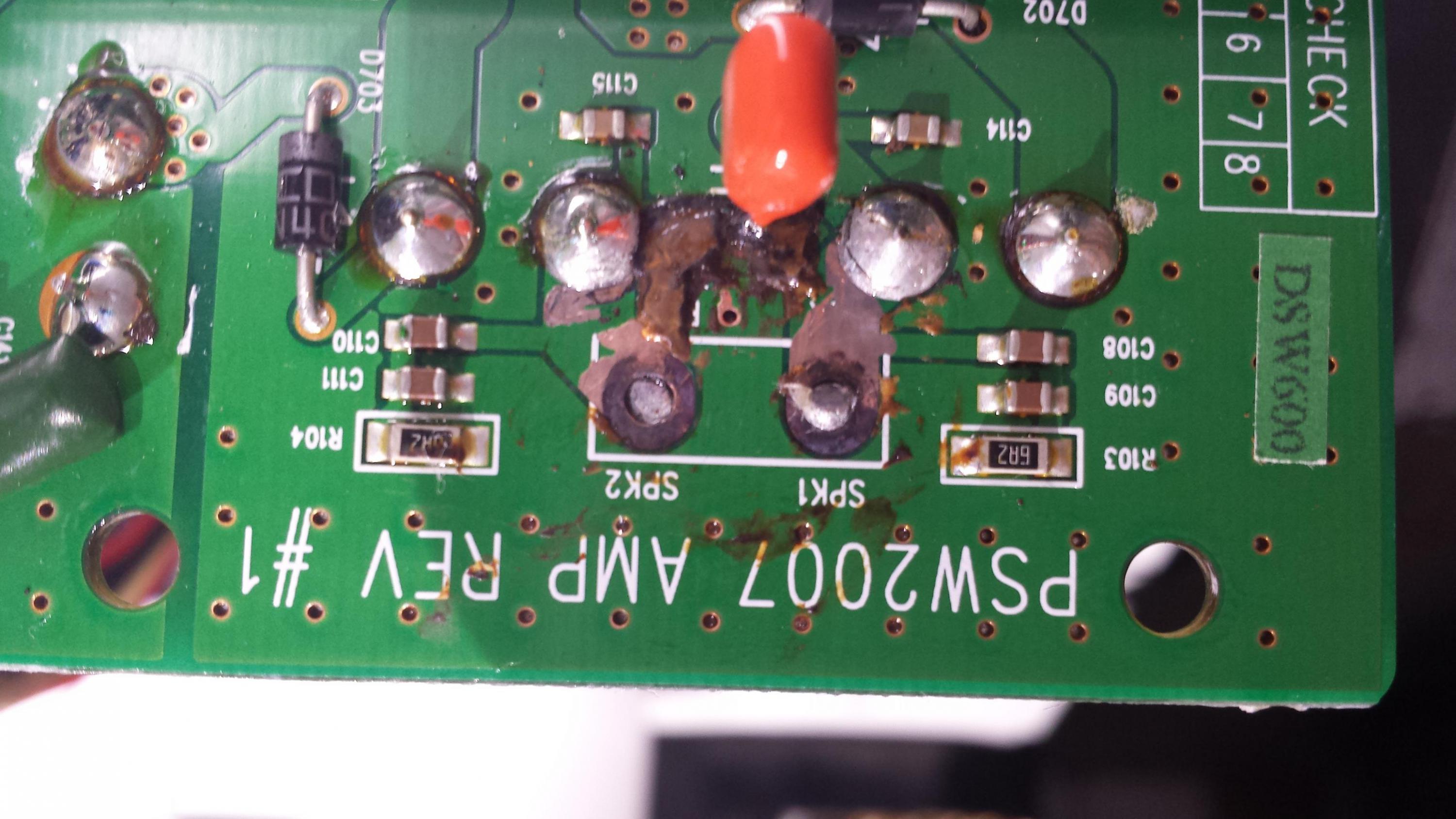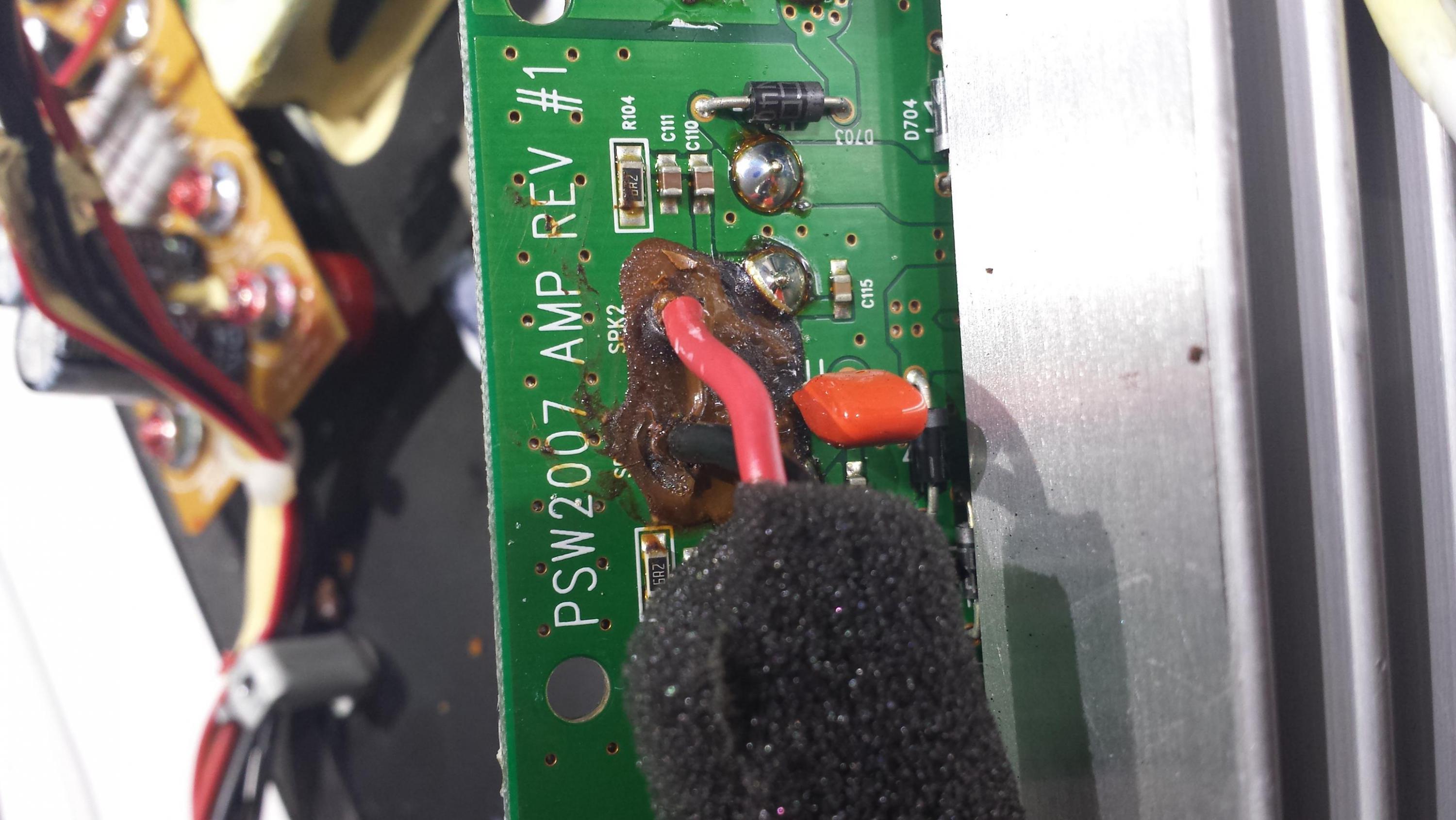 Working on replacing a component in an active amplified subwoofer (home theater) and it seems like a diode got molten hot and snapped. Only markings on it were: "P6KE1800" and underneath that was "SHS".