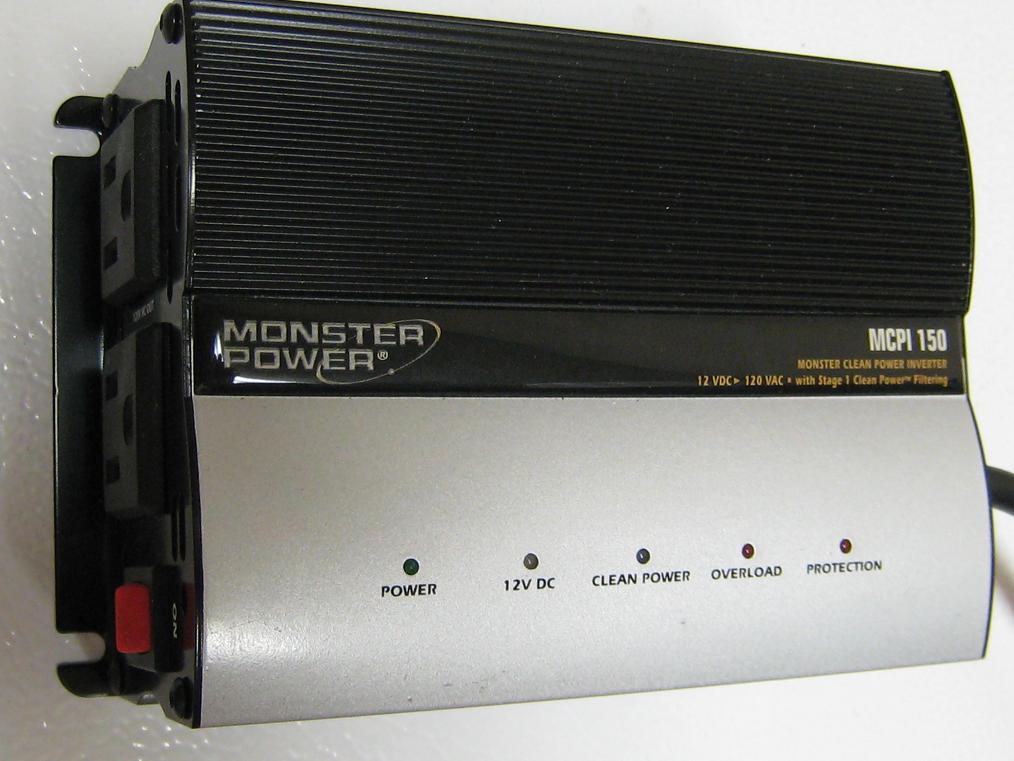 Here's the pictures of the 150 watt Monster Cable inverter. The red and white wires go to the ON switch.