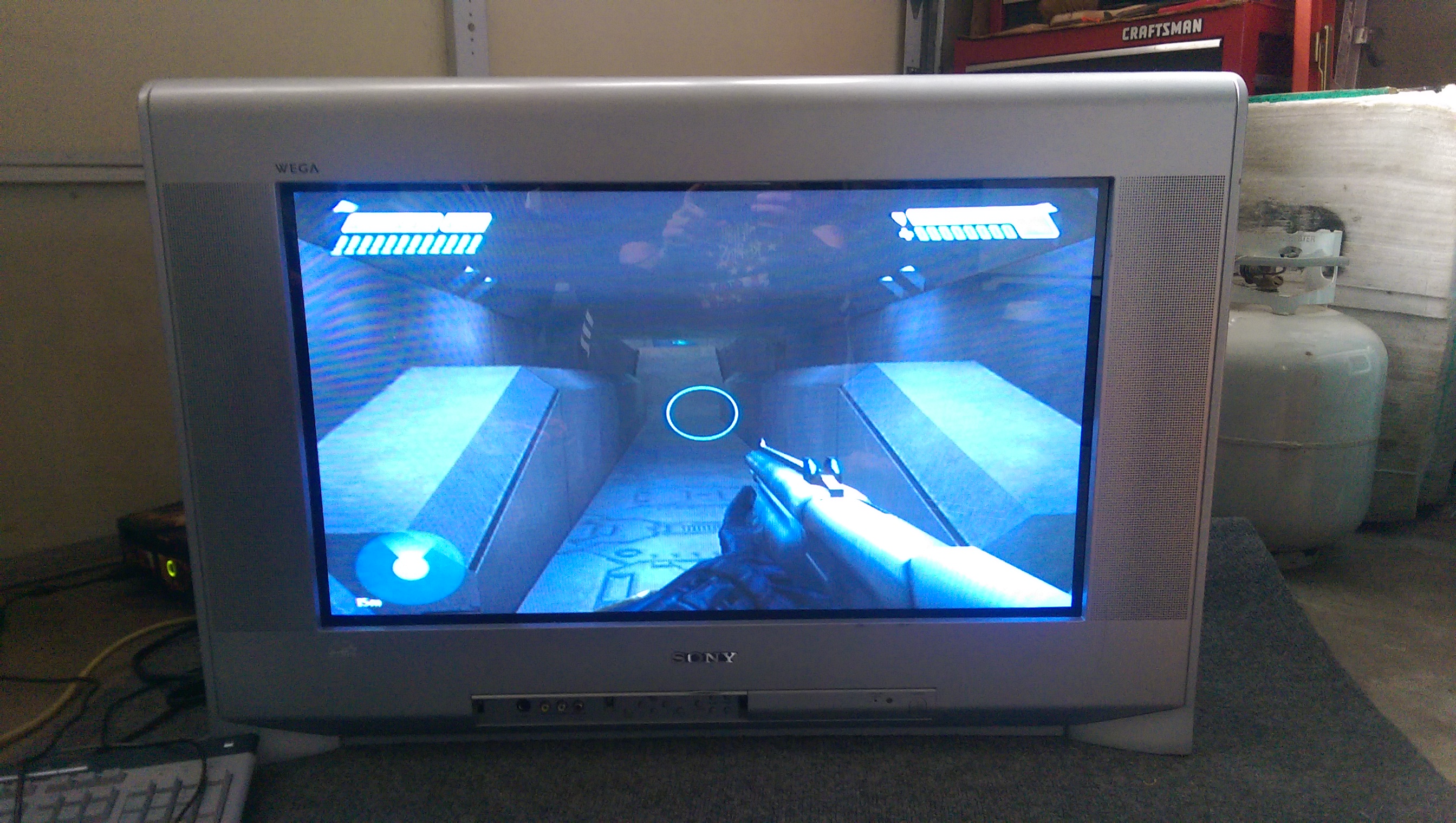 Here are some pictures of the Trinitron. It looks surprisingly clear with S-Video, but I have an RGB cable coming in the mail, which I'm guessing will look better than S-Video, mainly because S-Video is limited to 1024x768