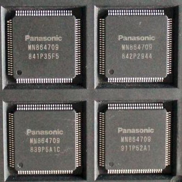 Another example is Matsushita, using a hollow triangle with a filled smaller triangle on each hollow triangle point earlier on; later, an "M" in a square with rounded corners was used, and when Matsushita renamed itself to Panasonic Corporation (considering the fact that the Panasonic name was well-known unlike its parent Matsushita), some Panasonic electronic components no longer have an insignia on them.