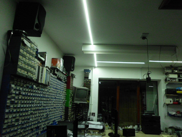 Here are mine stuck to the ceiling on pvc trunking, you will notice the fluorescent light on the ceiling, as my place is 1700 sq ft I dont have them on any more the whole place is lit with LED s put 12 volt to each end of your strip because if you dont the voltage will be lower at one end and the led s wont be as bright due to voltage drop , my first psu blew as the main reservoir cap dried out so I would replace this as well.