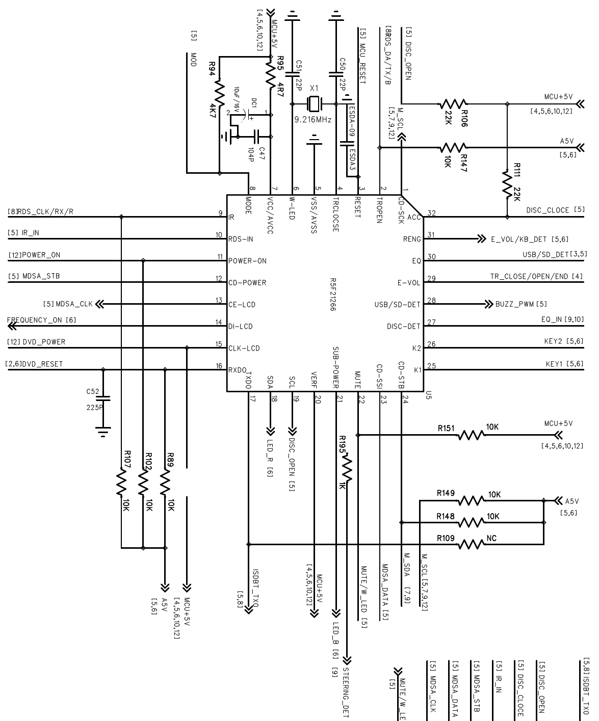 Note that power sequencing (page 53) is done by a second processor (R5F21266):