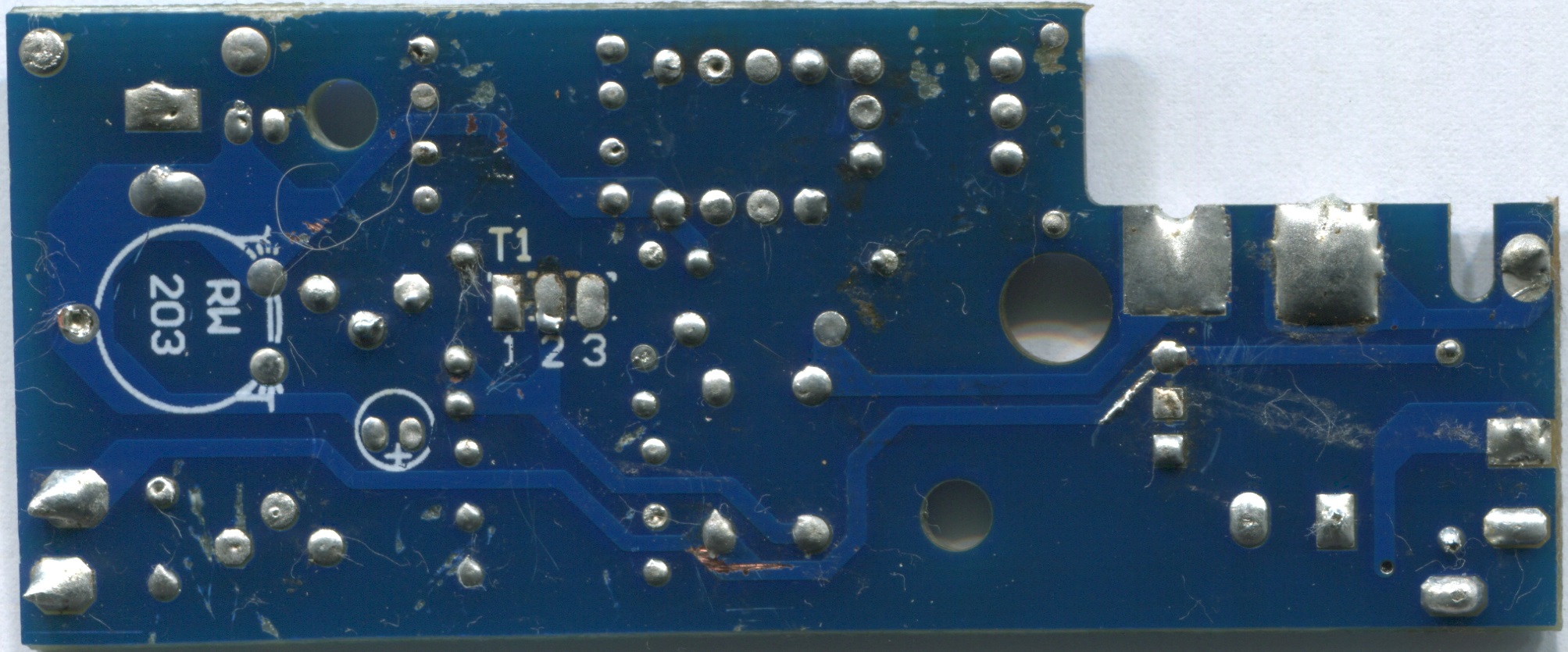 It looks like a 2 sided pcb, it lets light through, I marked a red arrow is that a via bridging top and bottom circuit?