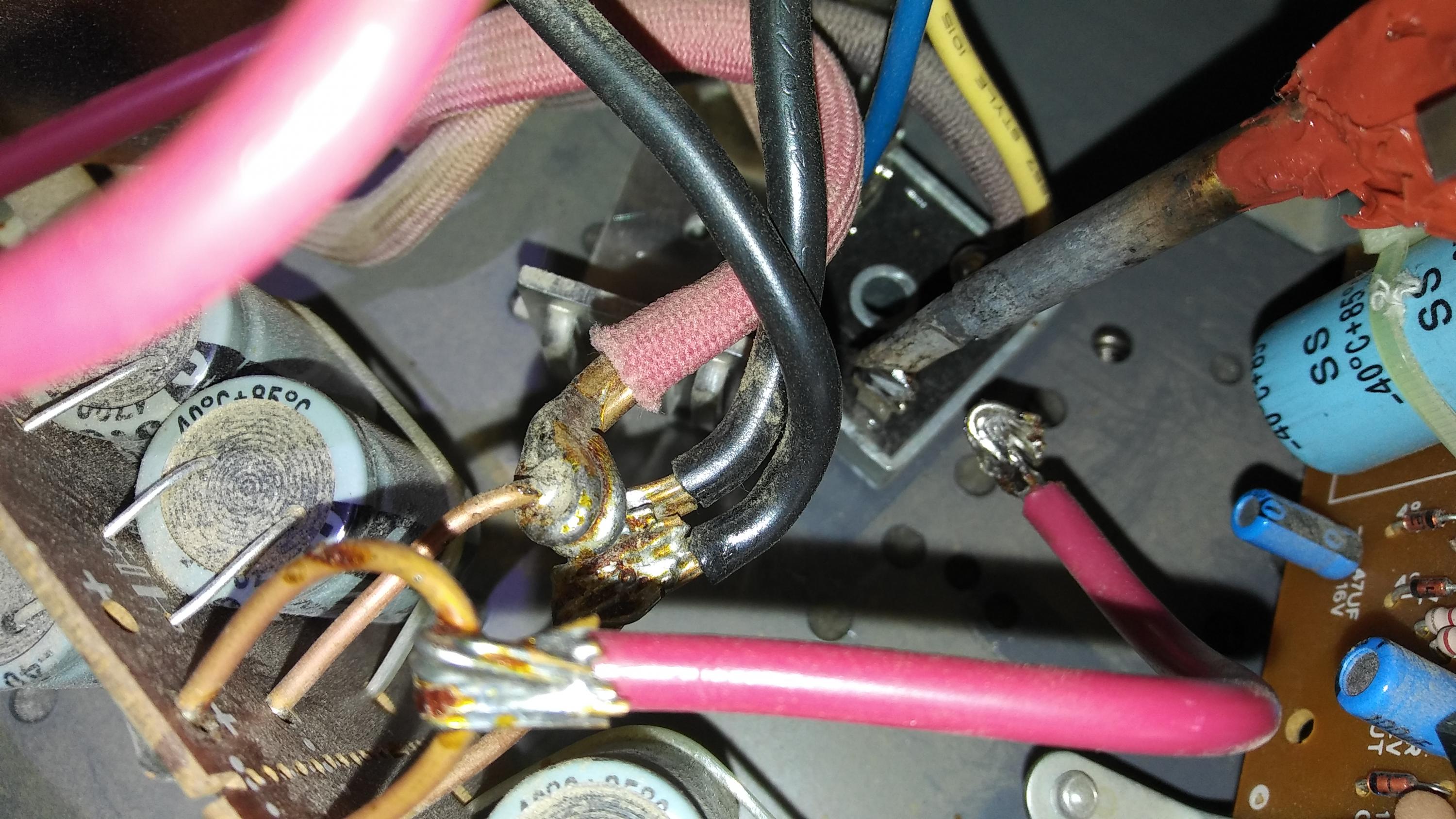 When I connected the transformer to power, the wire that was connected between the ground lead on the second channel and the negative side of the bridge rectifier... - Loading...