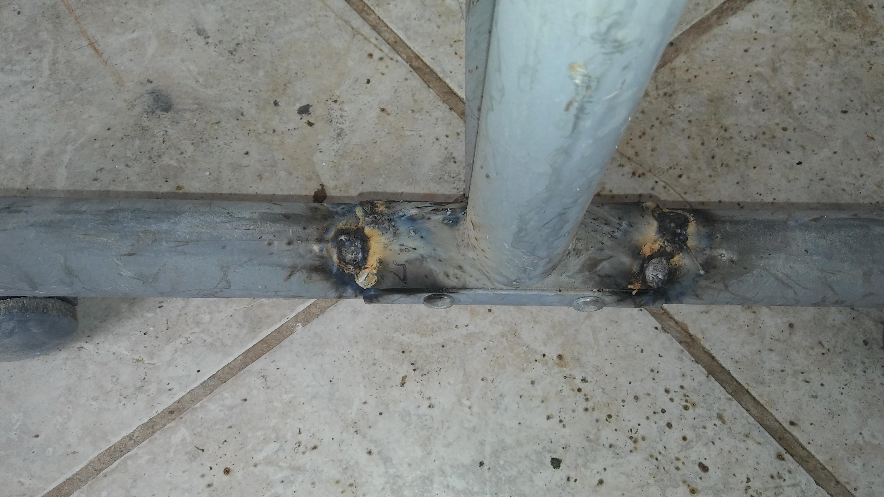 Update: Last night I ground the weld down and had to grind a ways into the original metal to get the weld to finally break. I did a T weld next, all the way around the base where the one bar set on the bottom bar. I set it on its side and pounded on the weld with a 4 Lbs. hammer. The bar bent! The weld held strong.