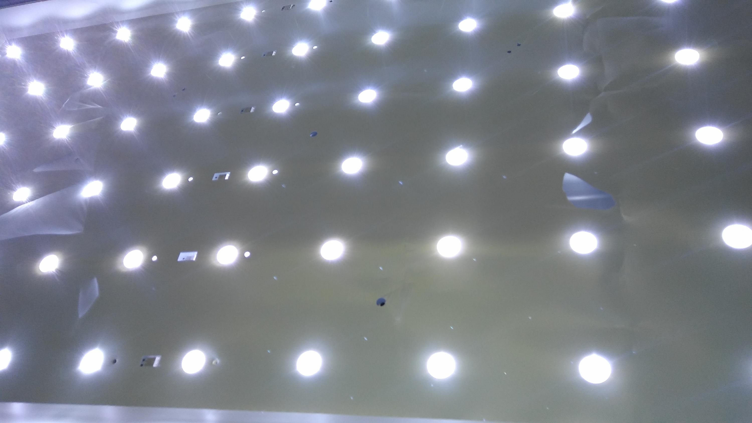 Armed with a lot of space and patience, I decided to open the TV, immediately noticing that a LED had flamed out and also burned a portion of that reflective white panel behind the transparent LED diffusers.
