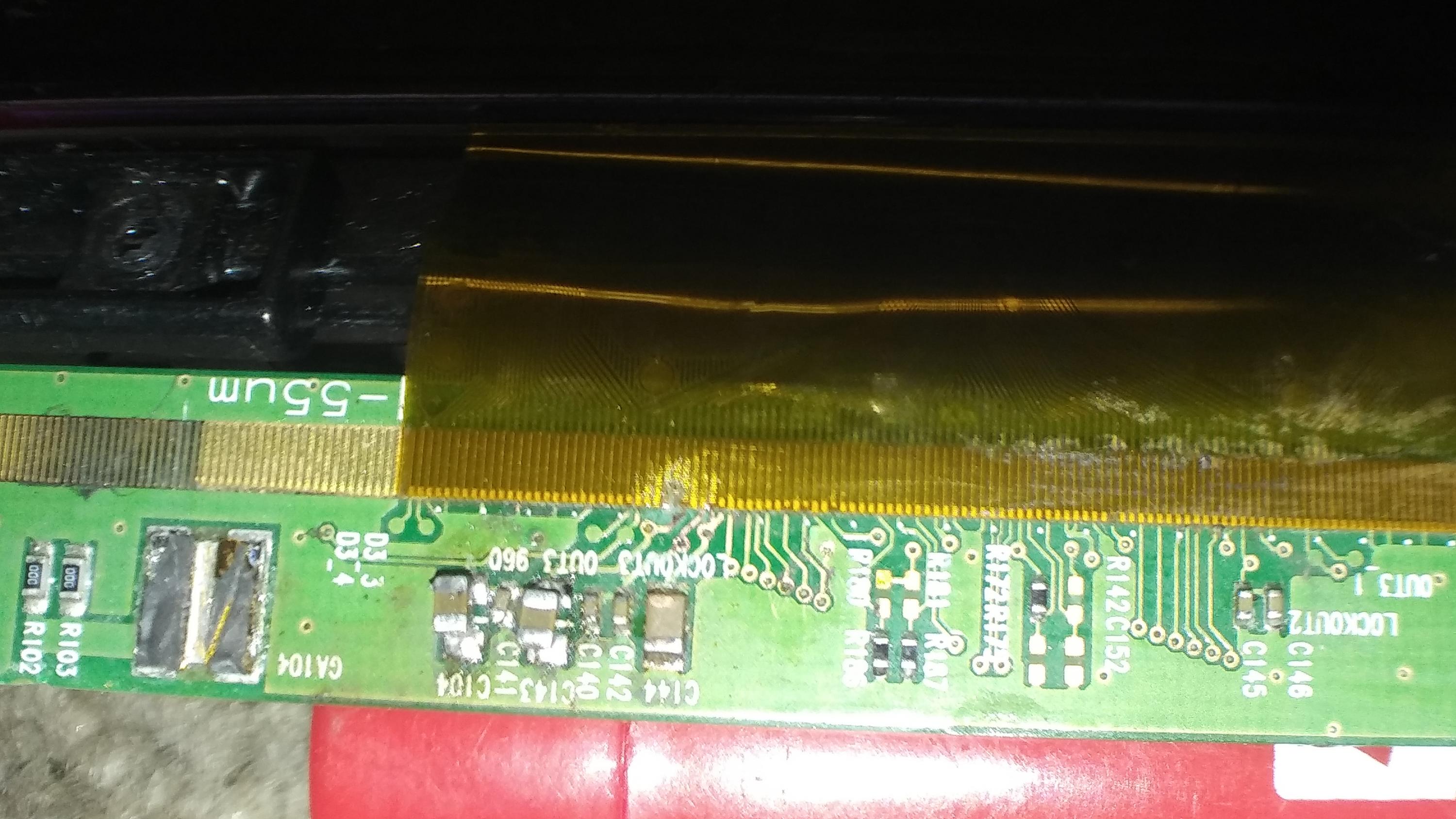 55" TV has water damaged on the TAB, after I changed two shorted SMD capacitors, now TV has picture but the TAB has 8 etched copper wires. (Before TV was cut off and T-con board was hot.)