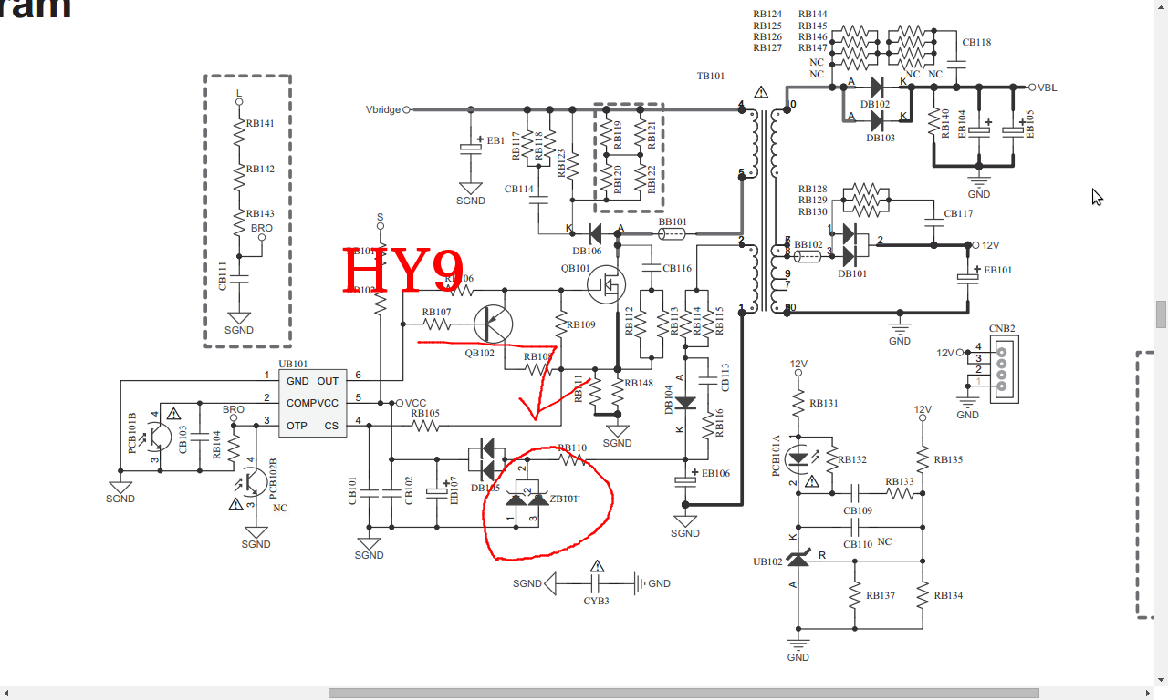 I use Haier 32" service manual fix this INSIGNIA 29" TV. From pic2, my guess is (HY9) a sot-23 9v Zener!