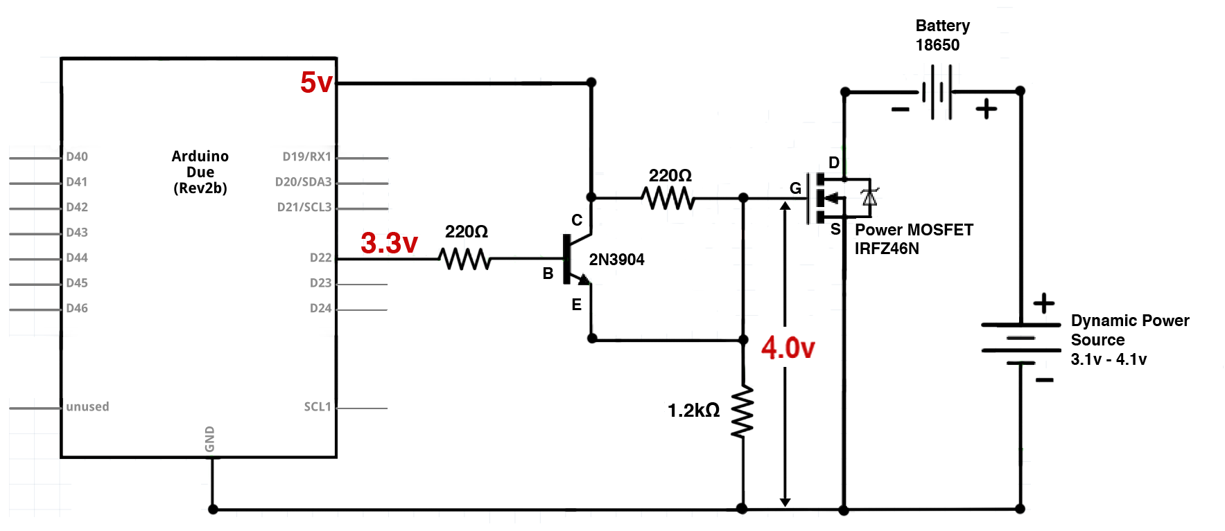 I was thinking that I wanted to get 4 volts to the gate of the MOSFET using a 3.3v pin on the Arduino ... let me re-think it and see what I can come up with.