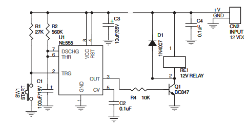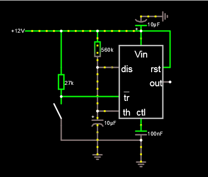 Good day folks. I need to build a countdown timer for a light fixture, that is, when you activate it, it turns the light on for 60 seconds and then turns it back off. Browsing the interwebs revealed the best solution might be to use a 555 timer in the configuration shown in the schematic. I kinda understand how it works and even simulated it and works perfectly, but I have a few questions regarding some aspects about it that I can't quite comprehend, since although the 555 timer is probably the most standard and ubiquitous component out there, I can't grasp its principle in this situation.