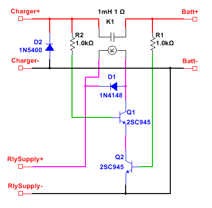 I have a situation where a battery charger will be destroyed if the battery that it is charging is accidentally connected backwards. So Id like to come up with some kind of circuit that will not allow current to flow from the battery being charged back into the charger if it is accidentally connected backwards. A diode will not work because the voltage drop across the diode is significant enough that the battery being charged will not be charged properly.
