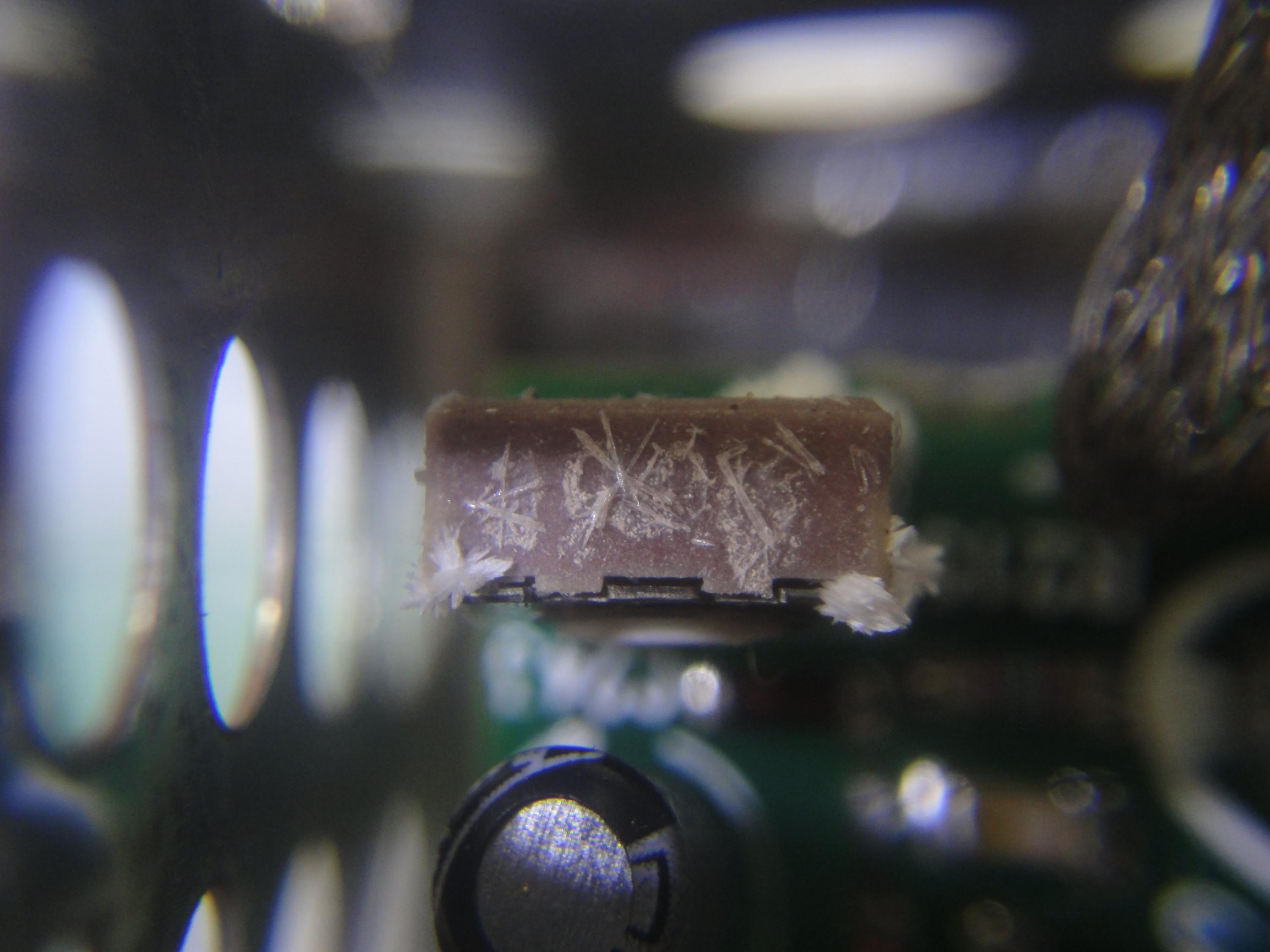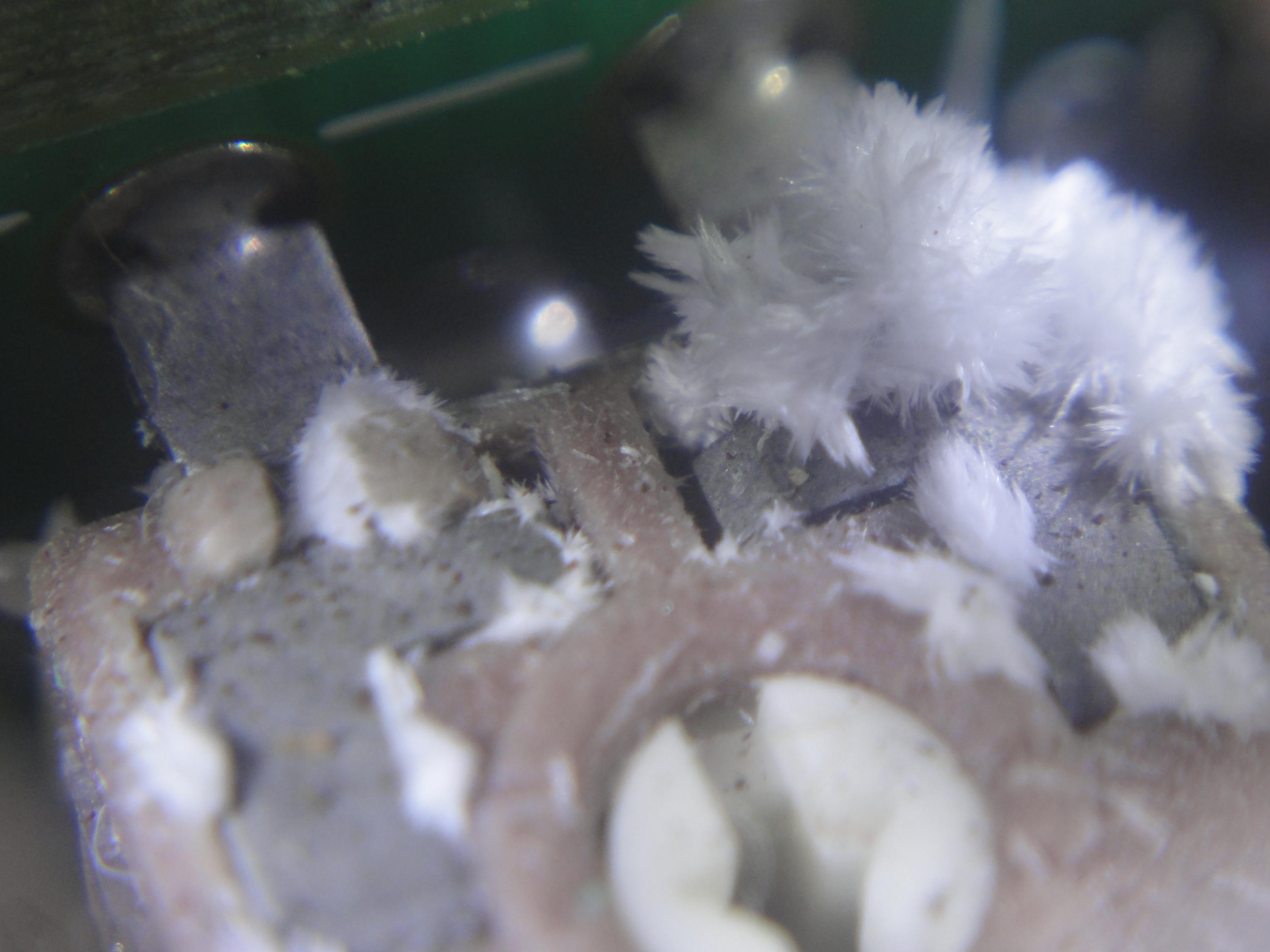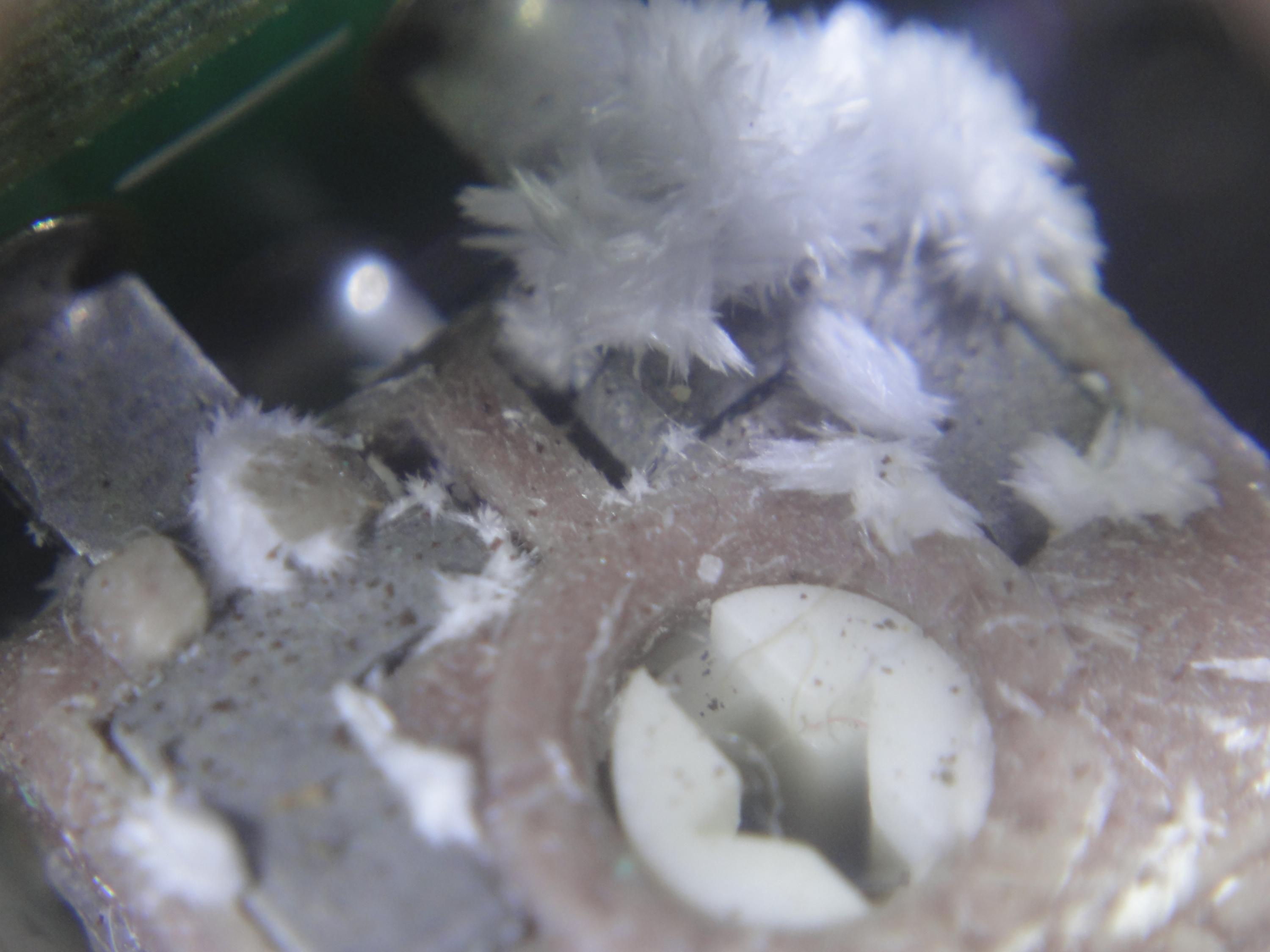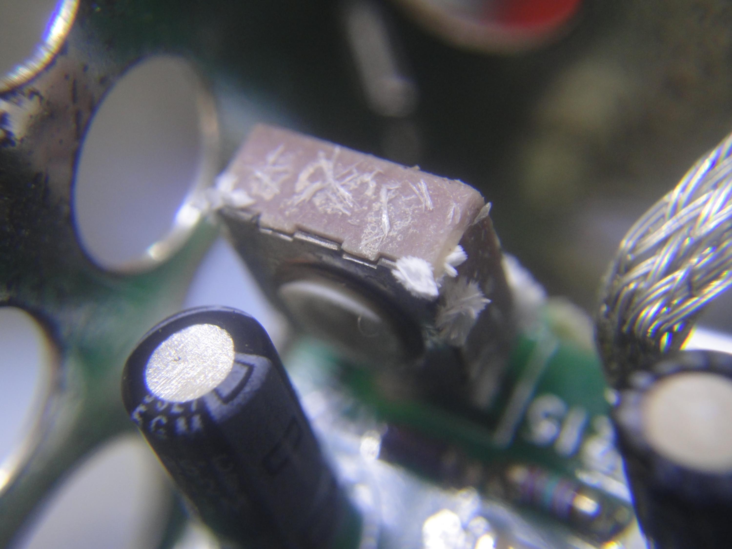 I have begun performing visual inspections, and while looking around the neck board I noticed a trimpot which seems to have started growing white crystals - out of the plastic!