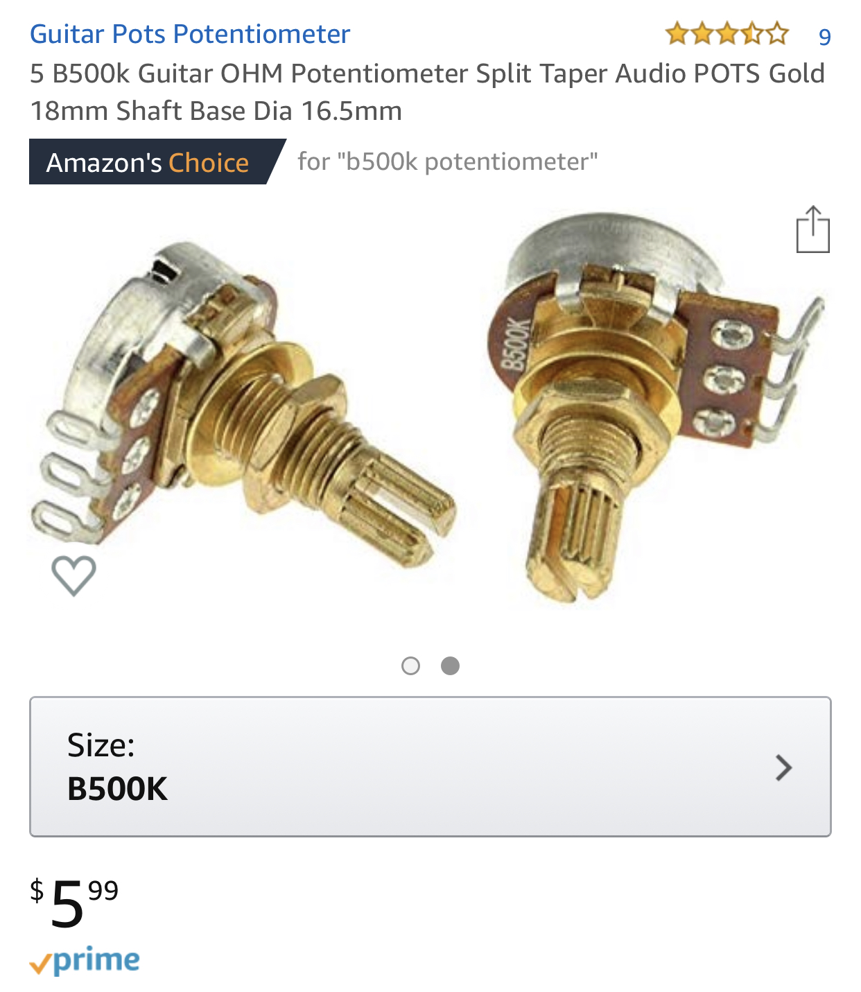 5 B500k Guitar OHM Potentiometer Split Taper Audio POTS Gold 18mm Shaft Base Dia 16.5mm https://www.amazon.com/dp/B0191AGY68..._0uvMCb92QMEZ1