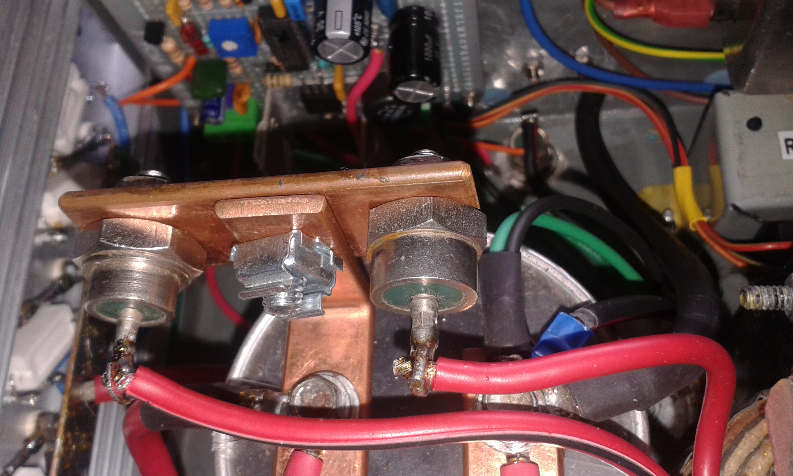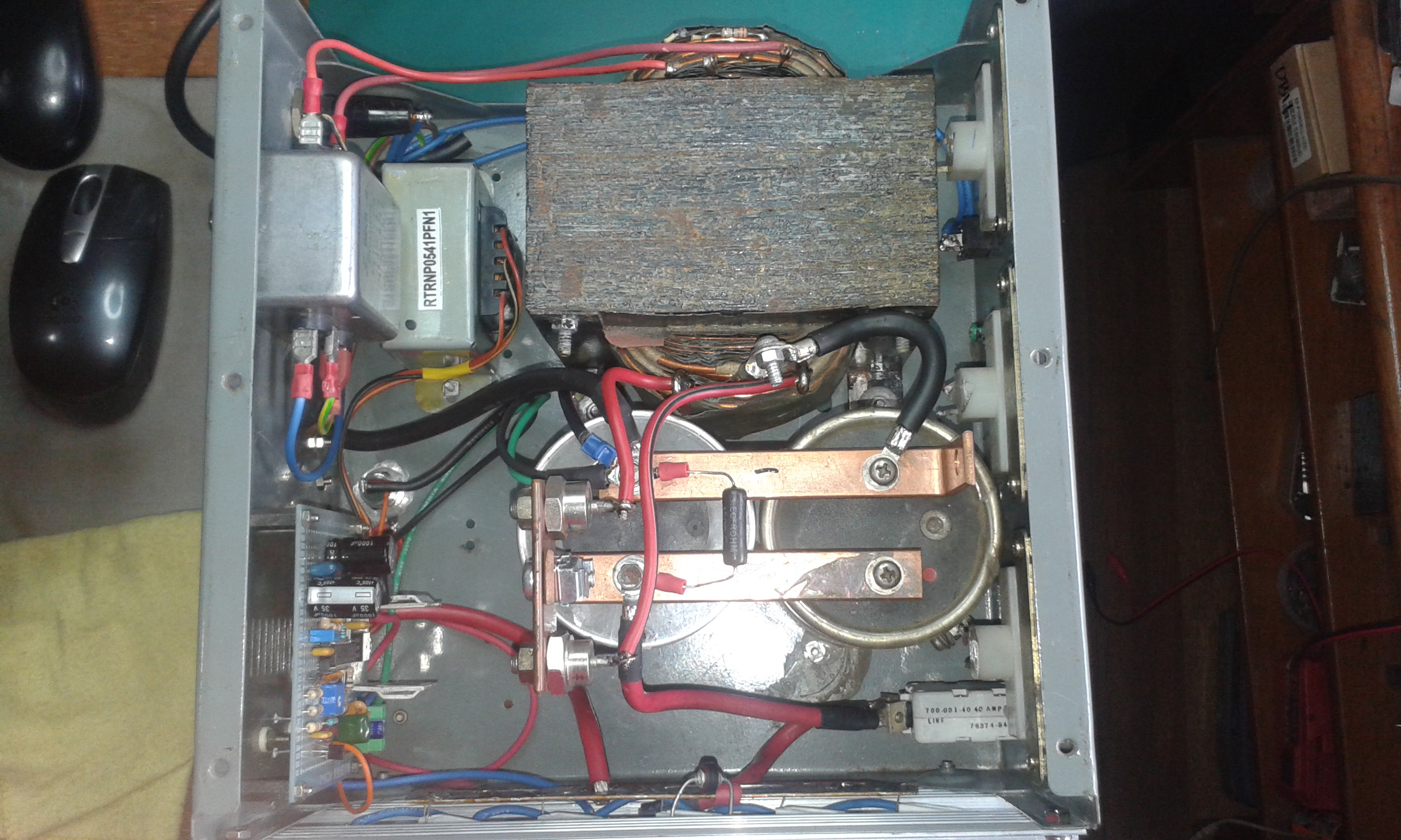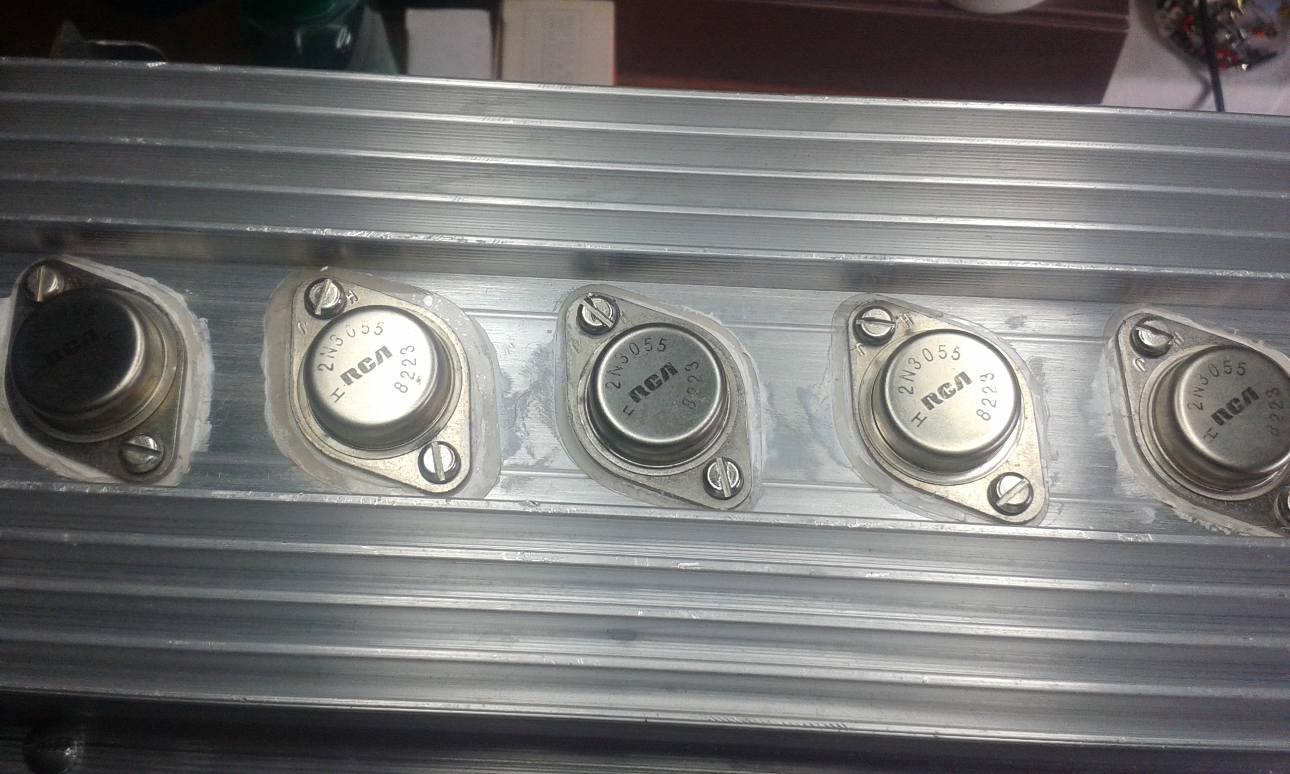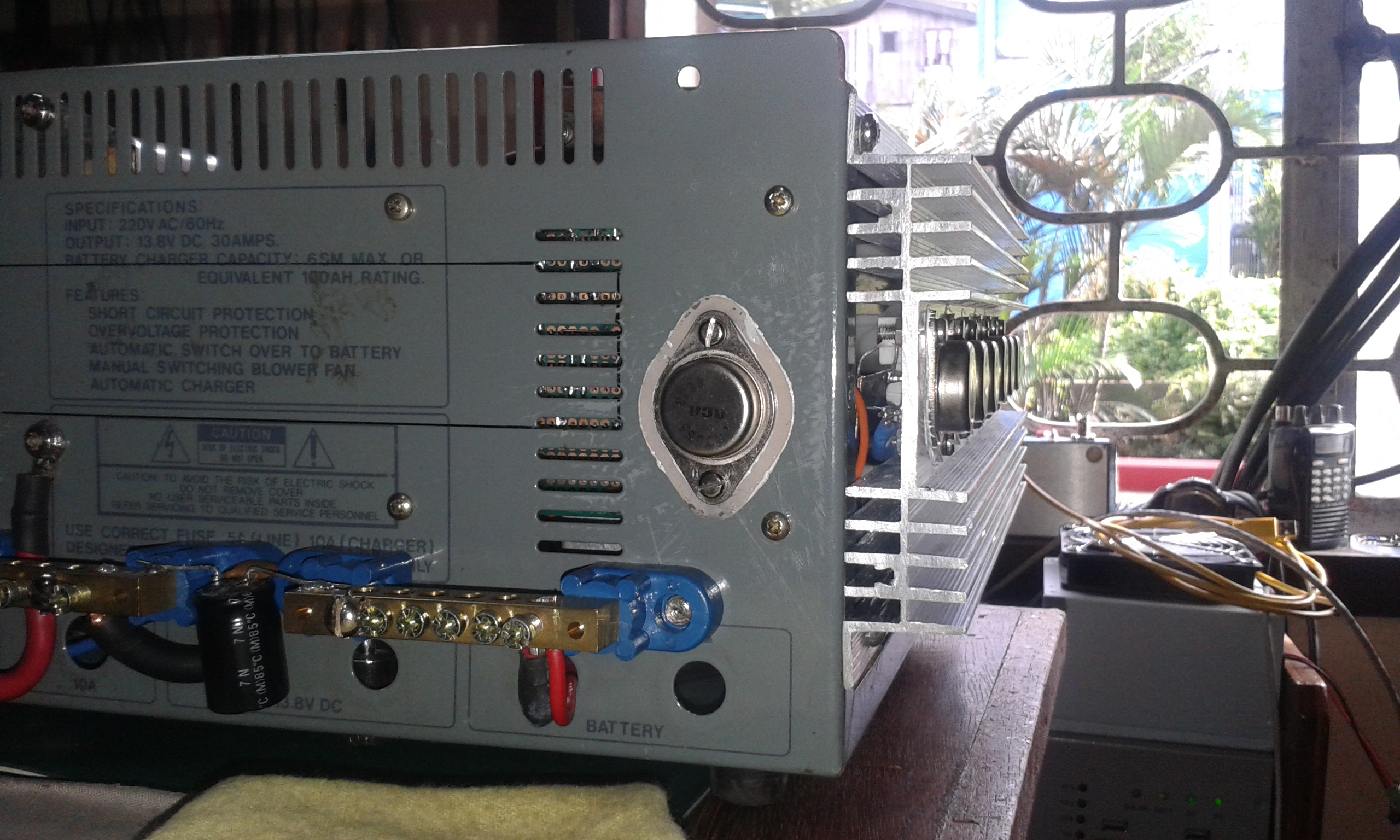 I made a linear power supply for HAM Radio use. The transformer has a secondary voltage of 18-0-18 at 240VAC input. Transformer has no labels or markings except for the primary and secondary voltages. The secondary wire size is 3.5mm. The transformer core dimentions are 11mm(h)x 8mm(d)x13.5mm(w). So no idea how many amperes the transformer was. Anyway, I made a 13.8vdc psu base on an Astron RM-50M schematics. The only difference are the pass transistors as I can't source the 2n3771 so I used the 2N3055x6 with 0.1 5W emitter resistor. Power supply works ok except that the pass transistors gets pretty hot at 1min keydown at 100W. Heatsink with thermal paste applied. Heatsink thickness is 3mm with fins. Any advice, suggestions to improve is welcome.