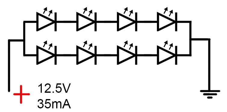 I have two rows of these 3528 LEDs, each row has four of them in series, but the rows are in parallel.