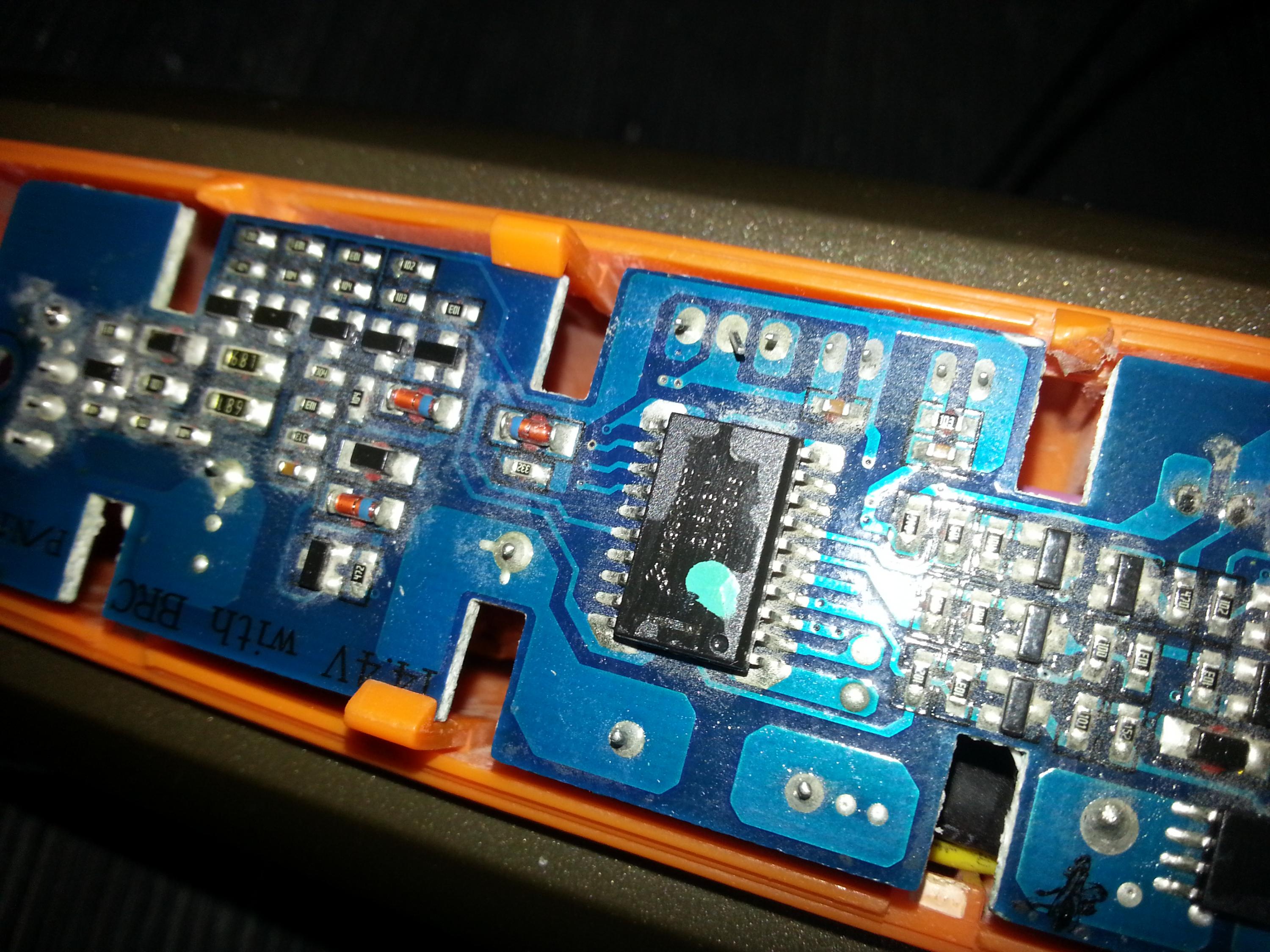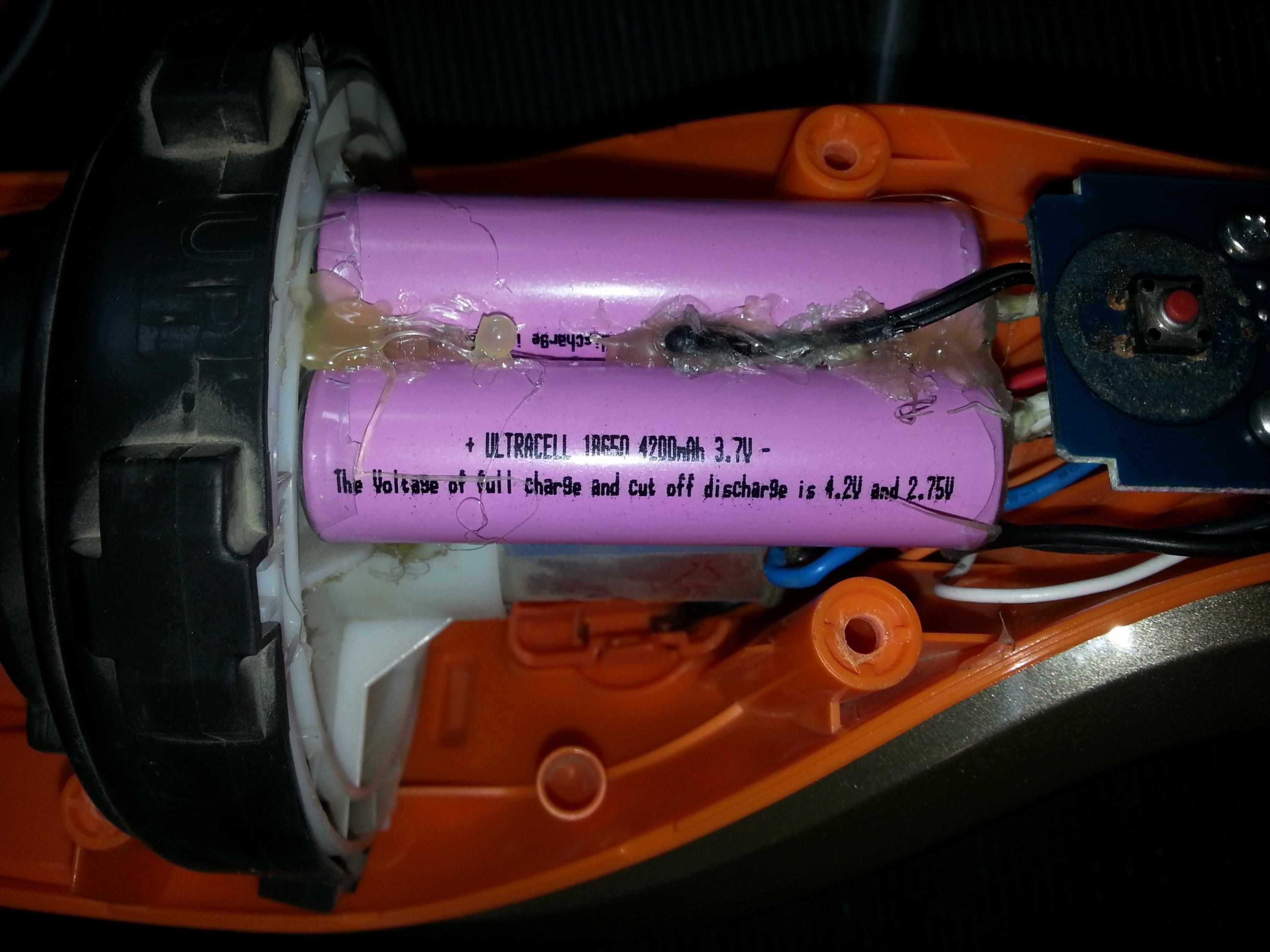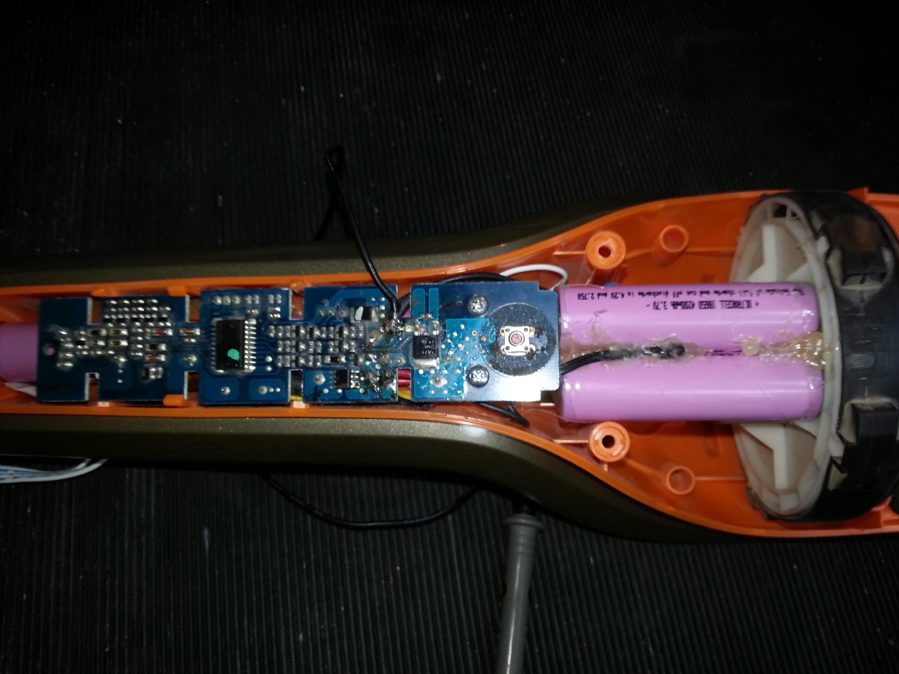 I snapped some pics of the thing today. Here's the batteries I got this time that my boy put in and also a close-up of the IC that's in there...had to do it rather on the sly so unfortunately the model is not visible, but the point is it HAS some pretty advanced tech in there. It probably handles charging and motor speed control. It's an Electrolux ErgoRapid or something like that, forgot to mention for anyone who might be interested...at least that's what it says on the outer case - I don't know the exact model because I didn't bother.