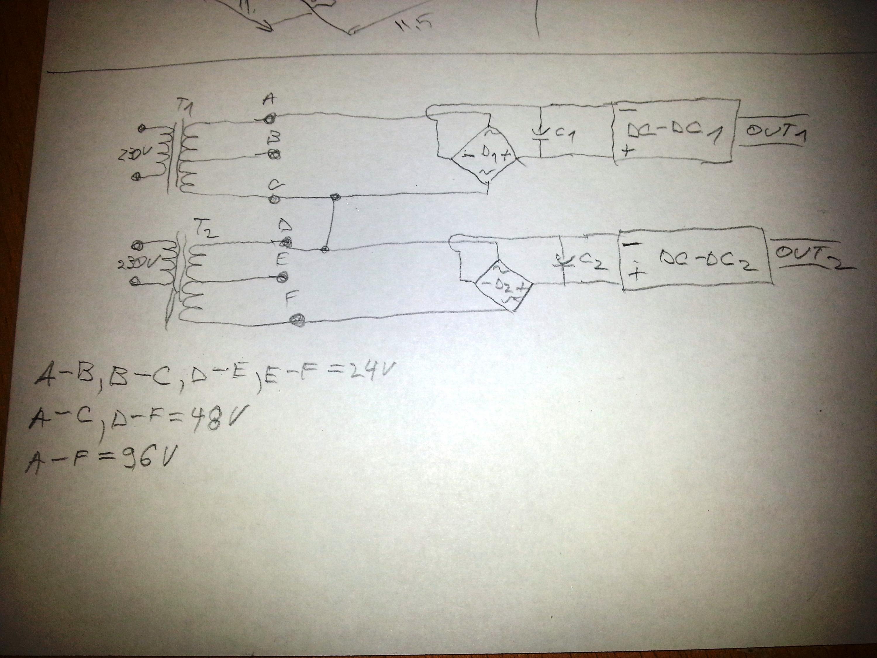 Now I want to do the same thing with these guys but instead of having one output, I was thinking of having two independent DC-DC modules...a bit pricey but worth it IMO, especially for a DIY geek like me. Sounds simple enough: two transformers, two bridge rectifiers, a couple of caps, all nice and separate, but then that got me thinking about a couple of things: