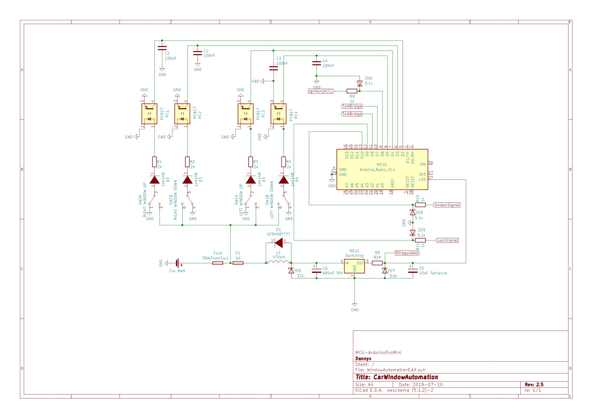 Here I am again. I messed around with KiCad and after a very long time (KiKad not being the most user-friendly out there), I managed to put together the schematic for the project...hope I didn't leave anything out. Not sure about what diode should go across L1, but other than that, it works on the breadboard the way it is, without L1 for now.