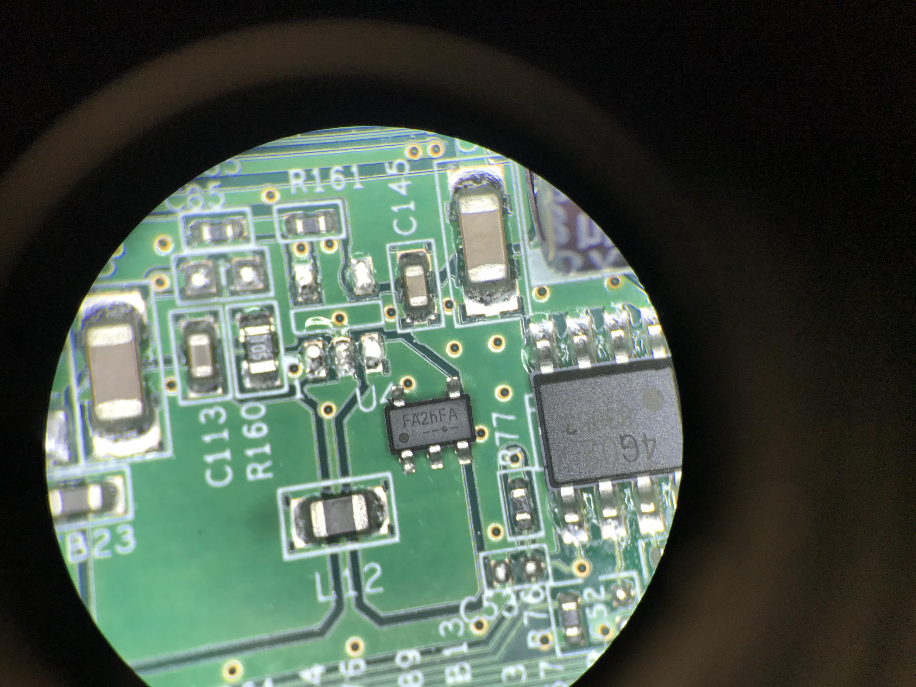 Downstream of the ferrite, i found the short on a SOT23-5 pin part (U4).