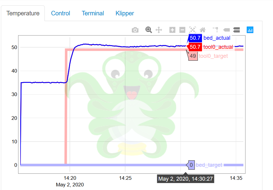 I also found a plugin to enhance the graphing in octoprint. Pretty nice. Pic attached.