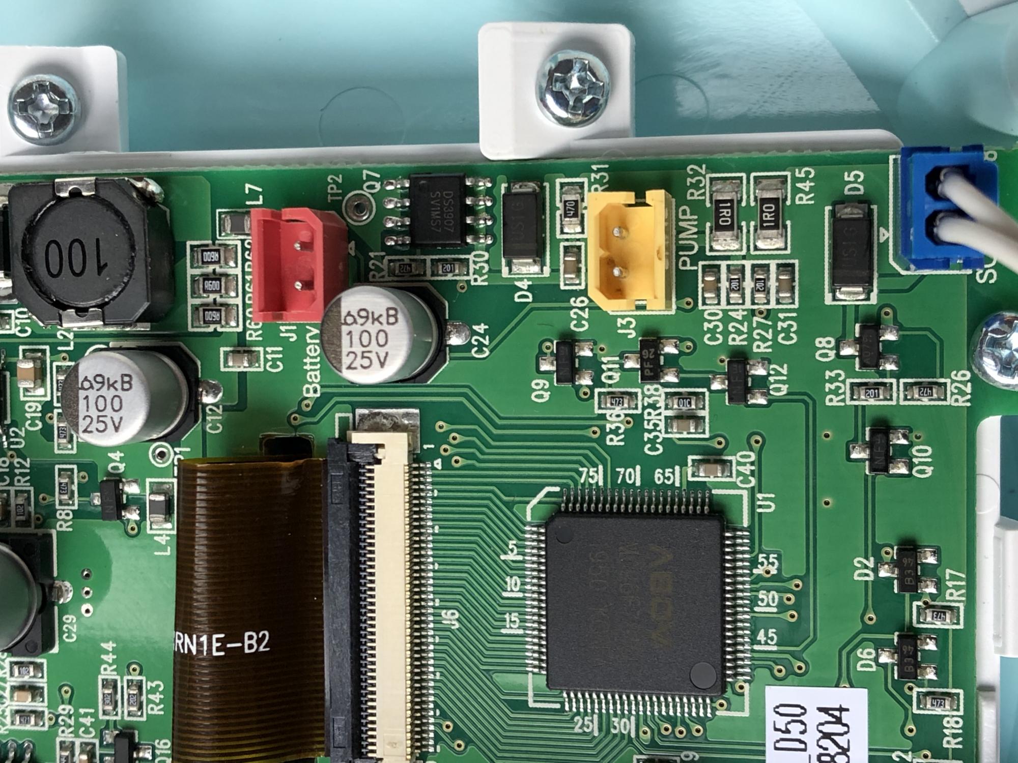 There isn’t any visible liquid/corrosion on the circuit board. Display works and responds to control settings, but the suction pump never turns on. The yellow connector goes to the pump