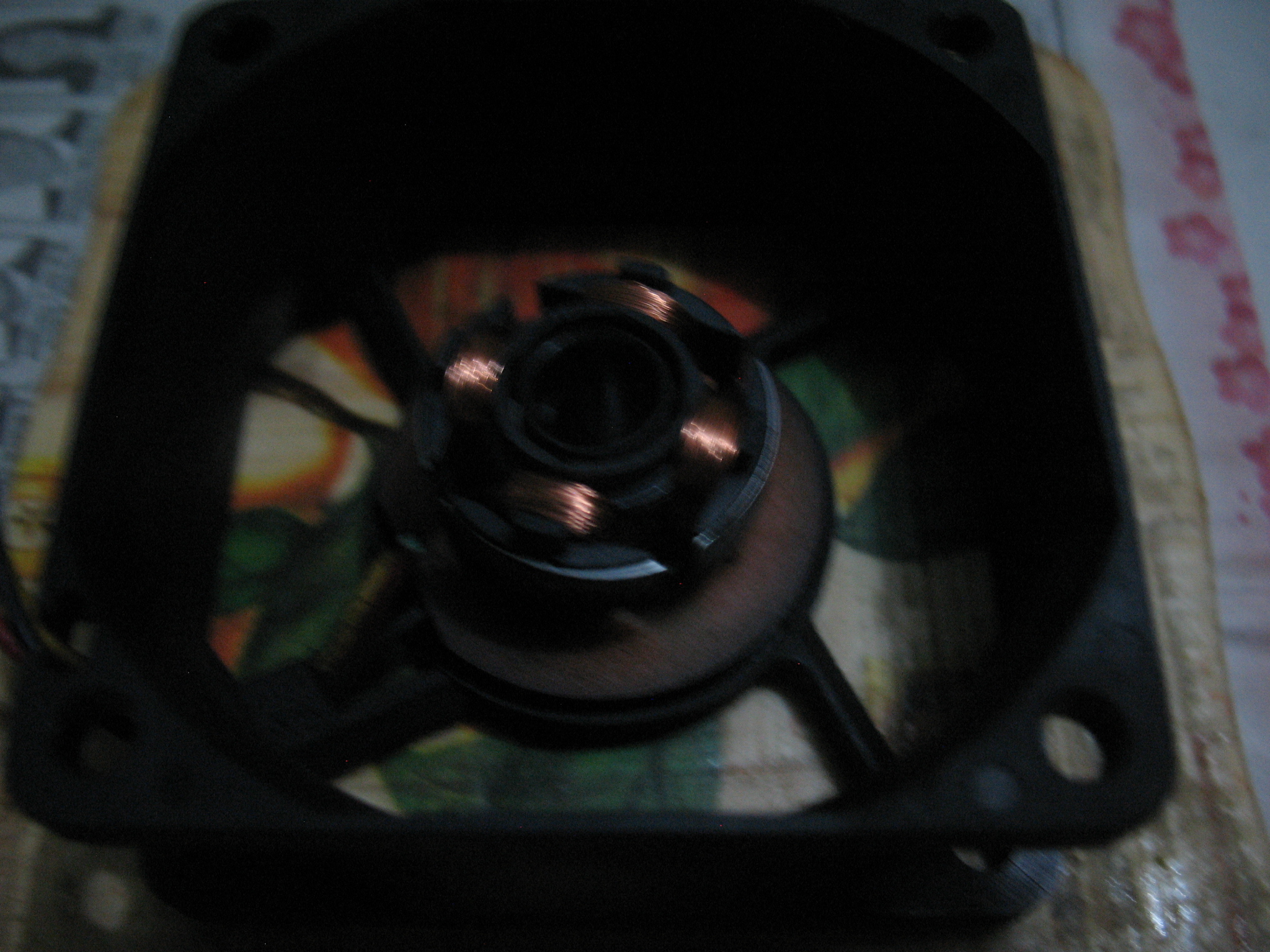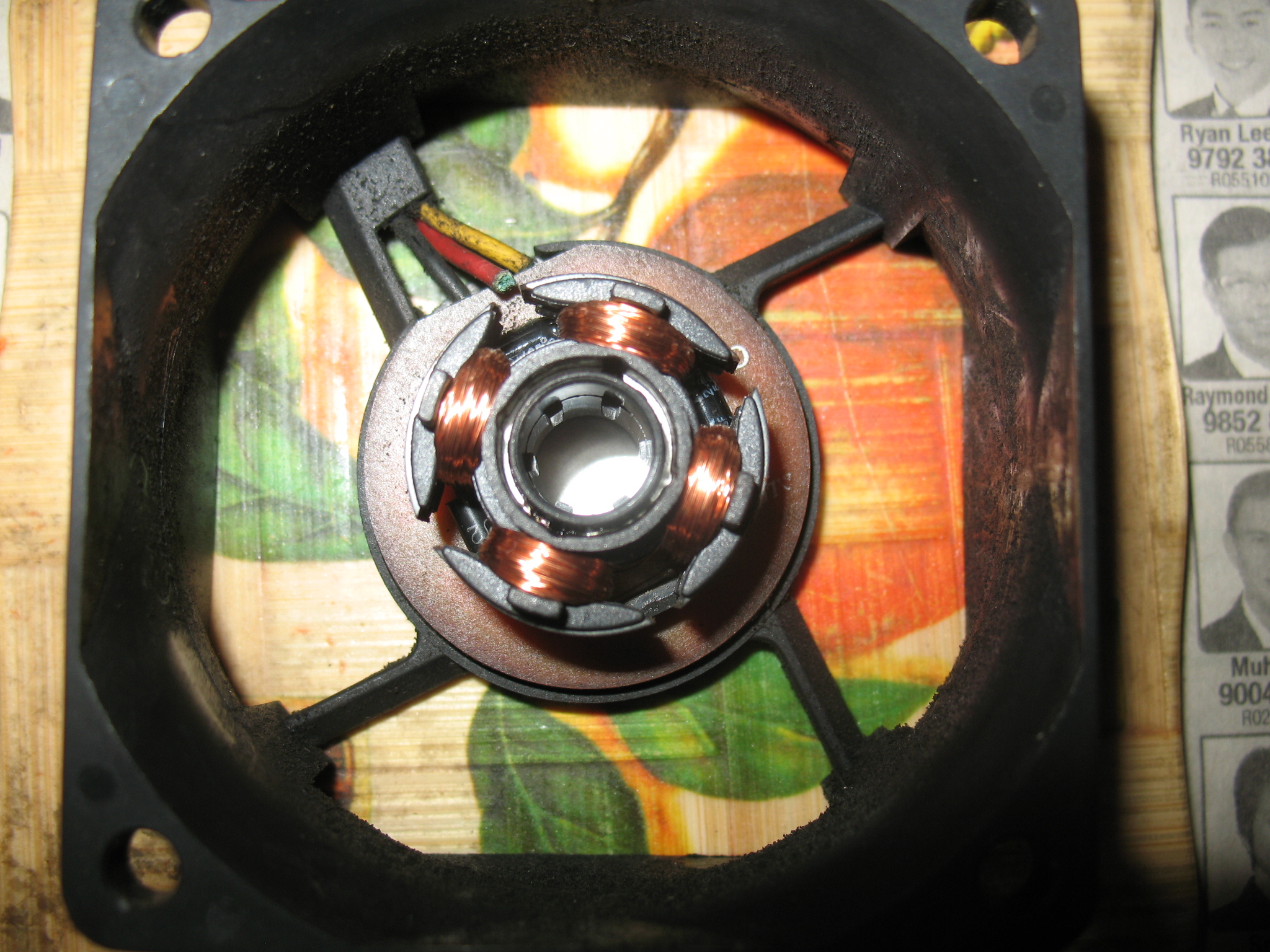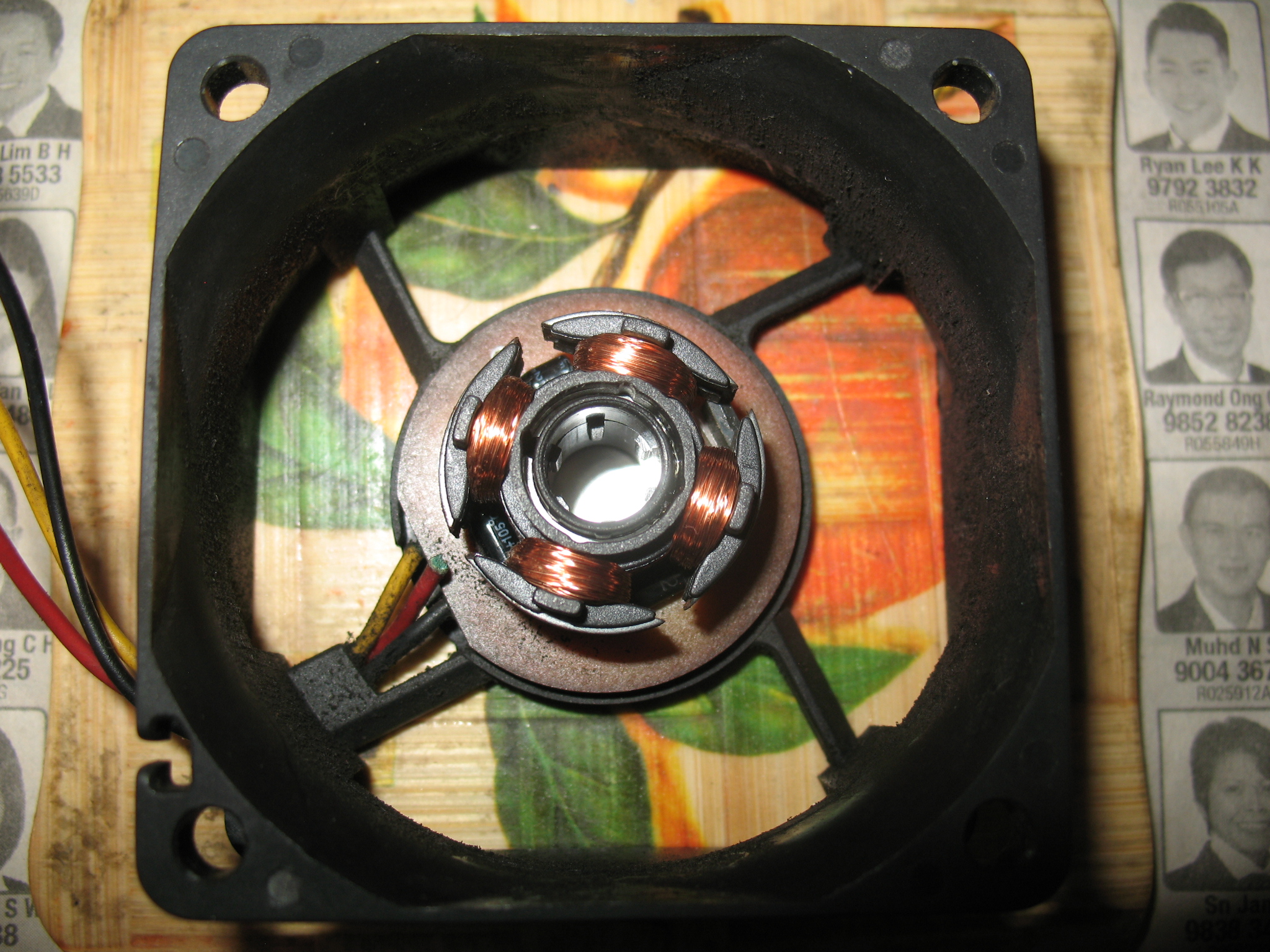 Also a useful hint: before trying to pull away the stator with the PCB assembly, make sure your wires on the other side are free and ready to go (i.e. not meshed between the usual plastic tabs that hold the wires in place when the fan is normally assembled.)