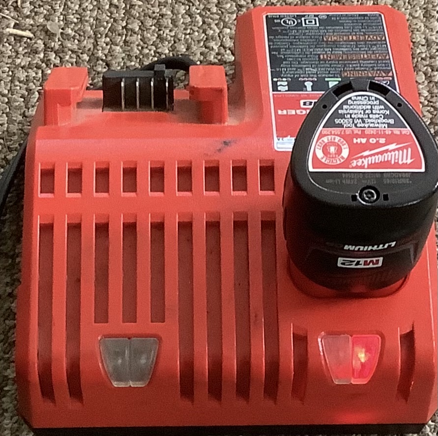 A couple of days ago I put a battery on to charge and the red LED light was on when I went to go put the battery in the tool yesterday the fuel gauge showed one light out of four so I said what the hell is going on here the LED light is red or green it is not on at all so I open it up and checked the two capacitors that have gone bad on another Milwaukee battery charger I have same exact model so I been through this crap before but this one has lasted the longest time this is one of first battery chargers when they first start having the the “M” series I still have some of “V” series the ones that were nicad batteries