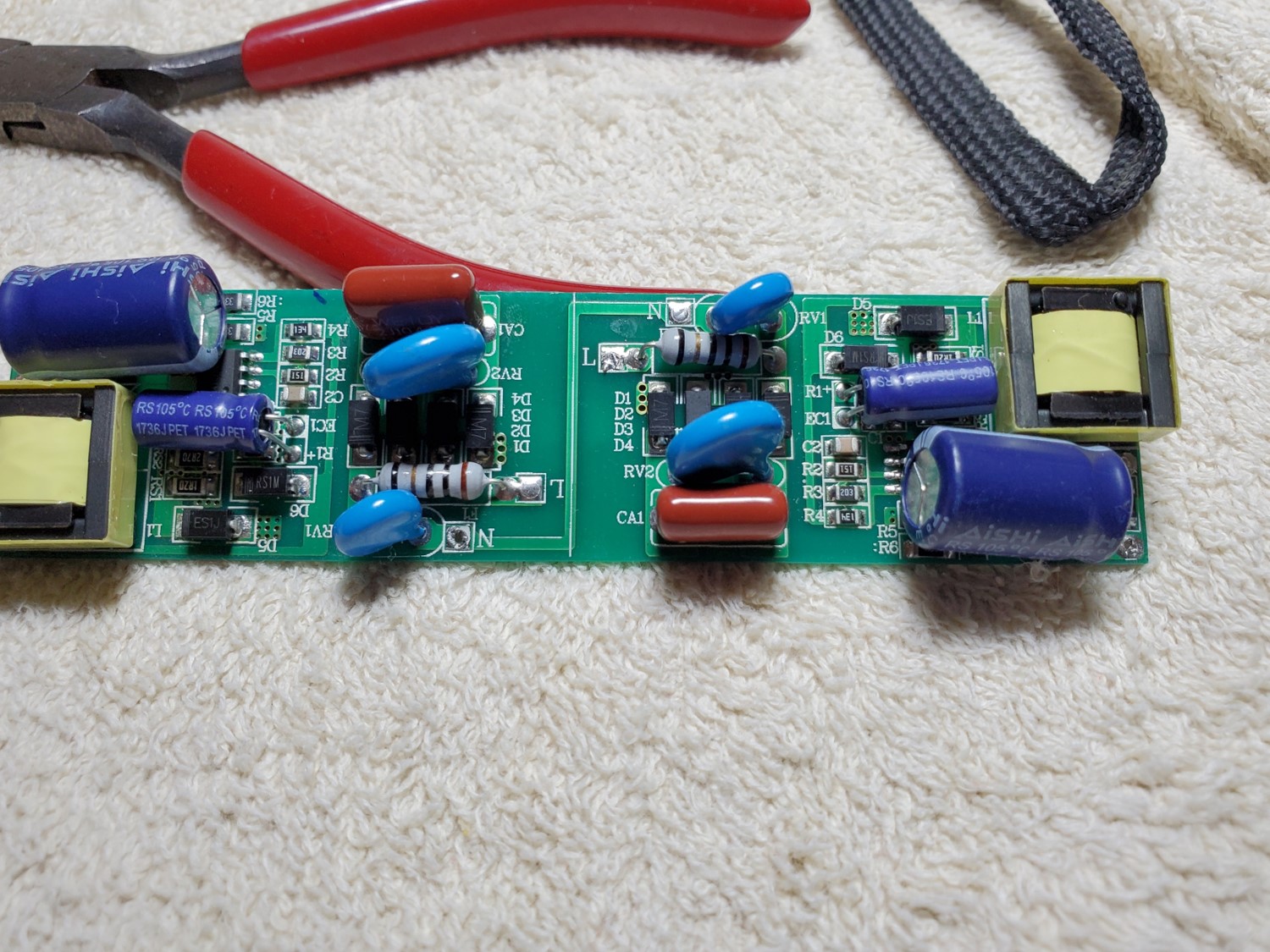 Hi i have an LED garage light. It has two bulbs/strips of led lights in it. One of the bulbs is flashing. I dissassembled the light to get to the LED driver board.