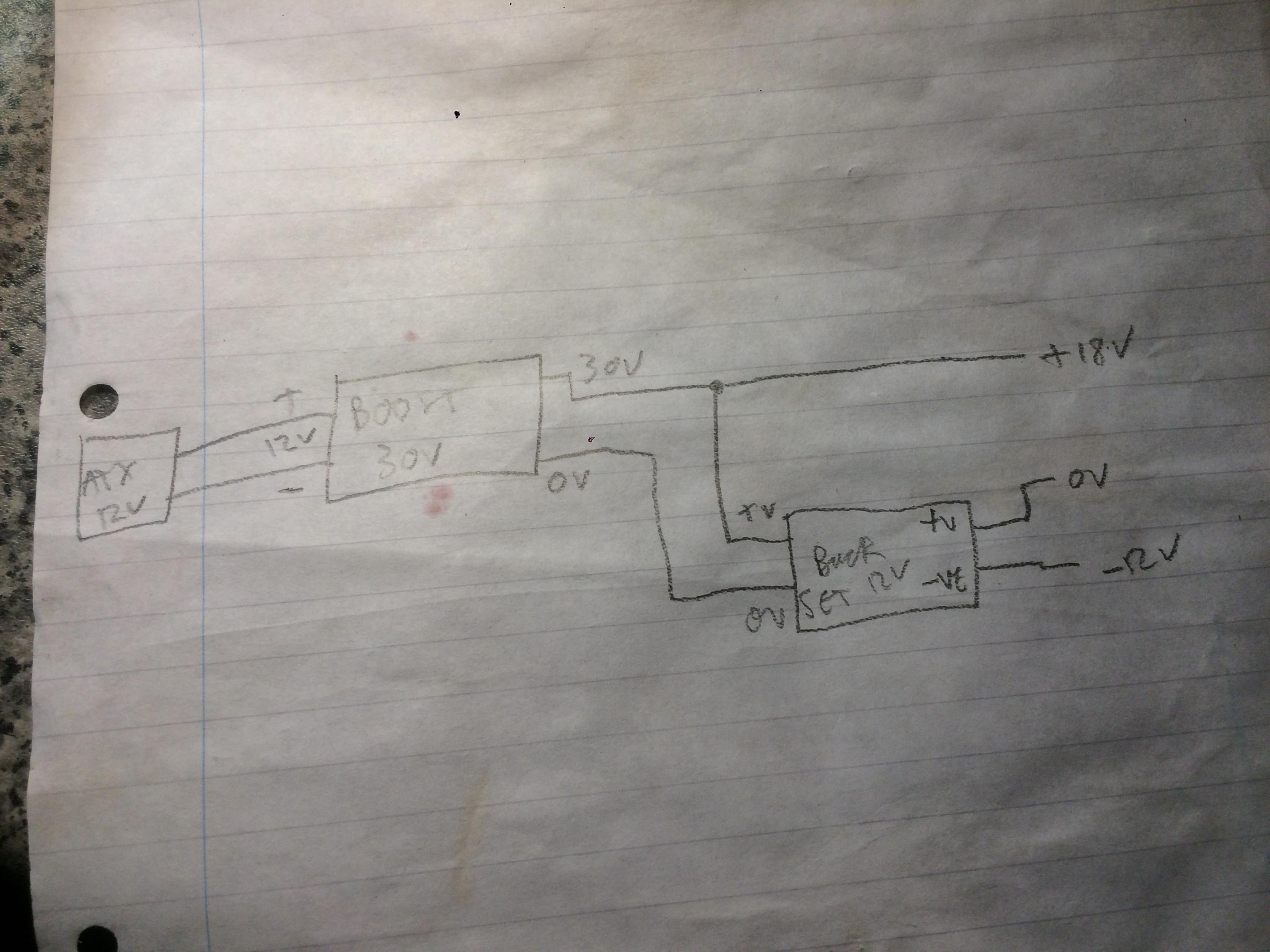 I can alter the values on the Boost and the Buck so it would equal 12v each. I just wrote down what it was set on at the moment.